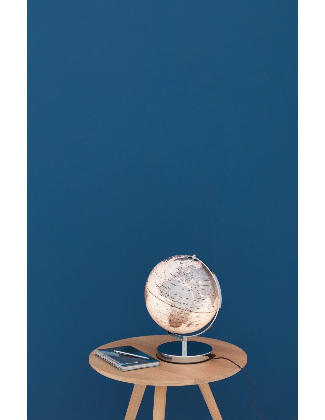 TROIKA TERRA LIGHT Globe illuminé 25cm, bleu foncé, pied doré