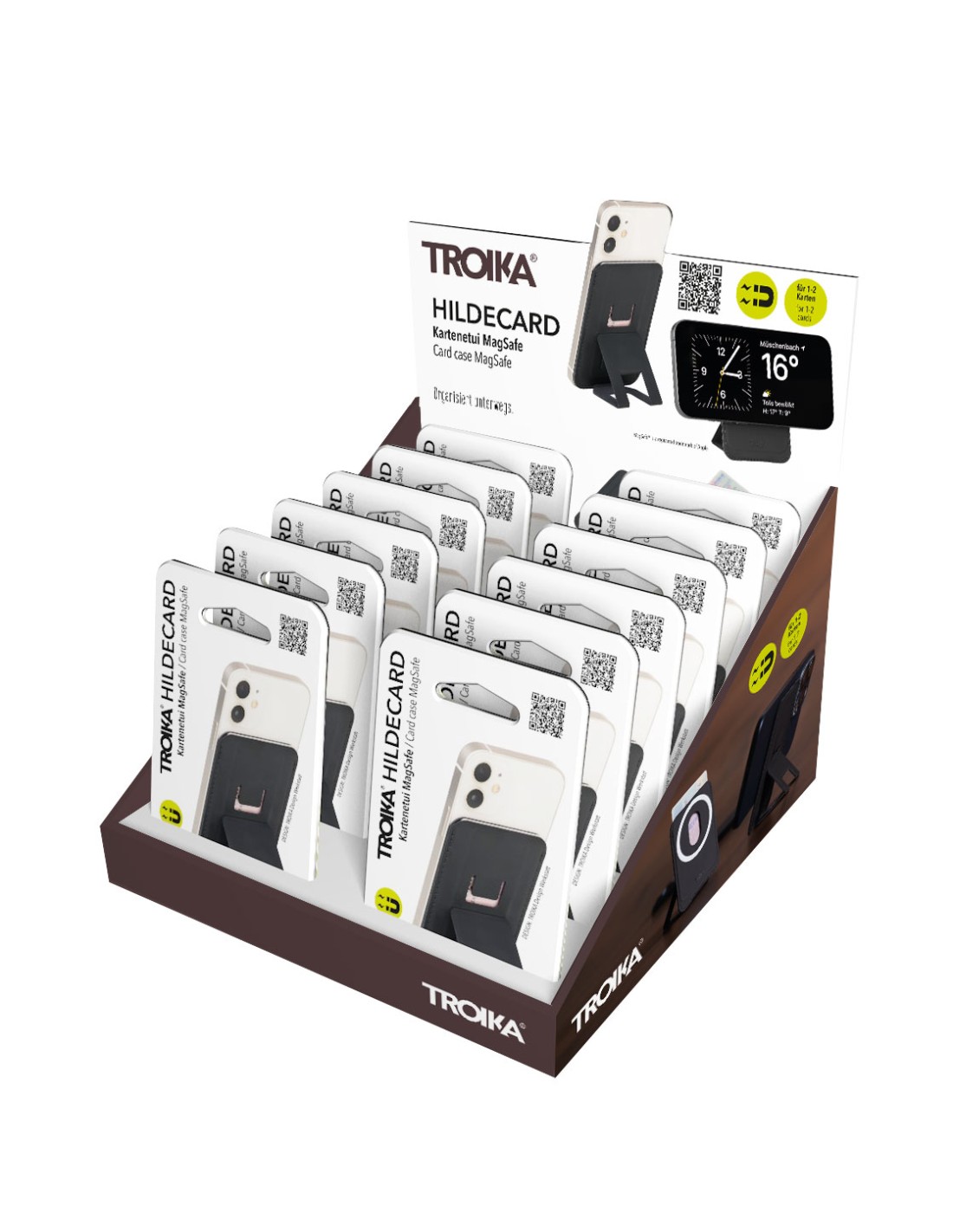 Présentoir de comptoir y compris 12 x porte-cartes HILDECARD MagSafe (CCM20/BK), en libre-service, carton, imprimé, mat, multicolore