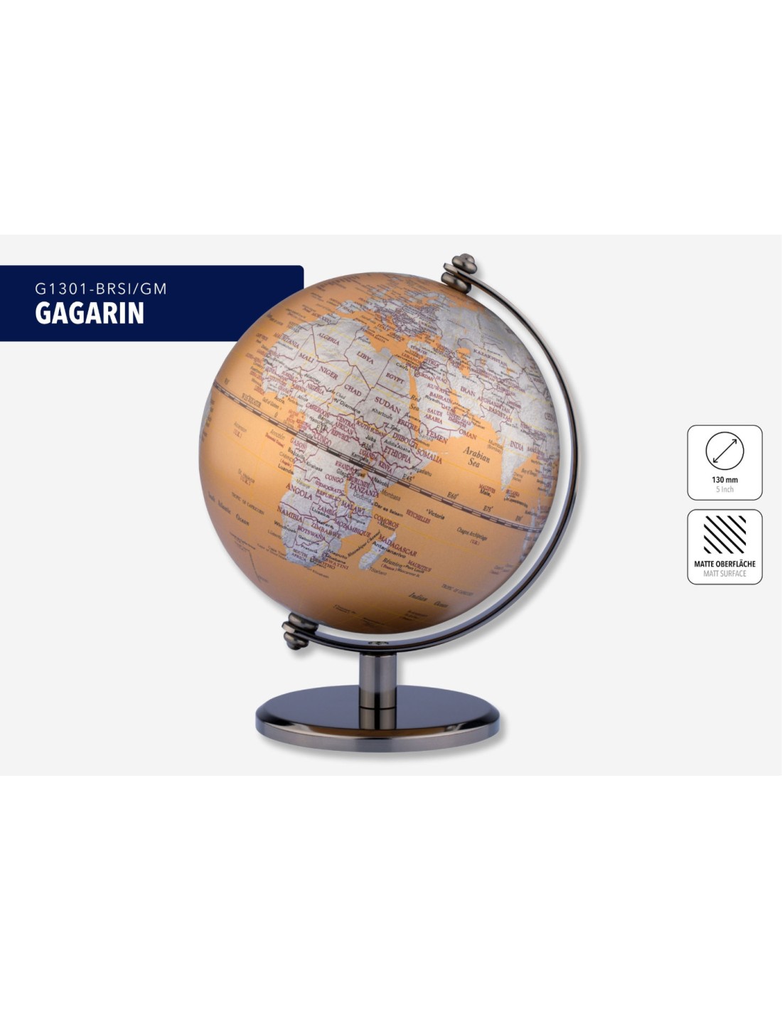 Globe avec un diamètre de 13 cm, pied métallique chromé, axe mobile, métal, plastique, mat, argenté/couleur bronze