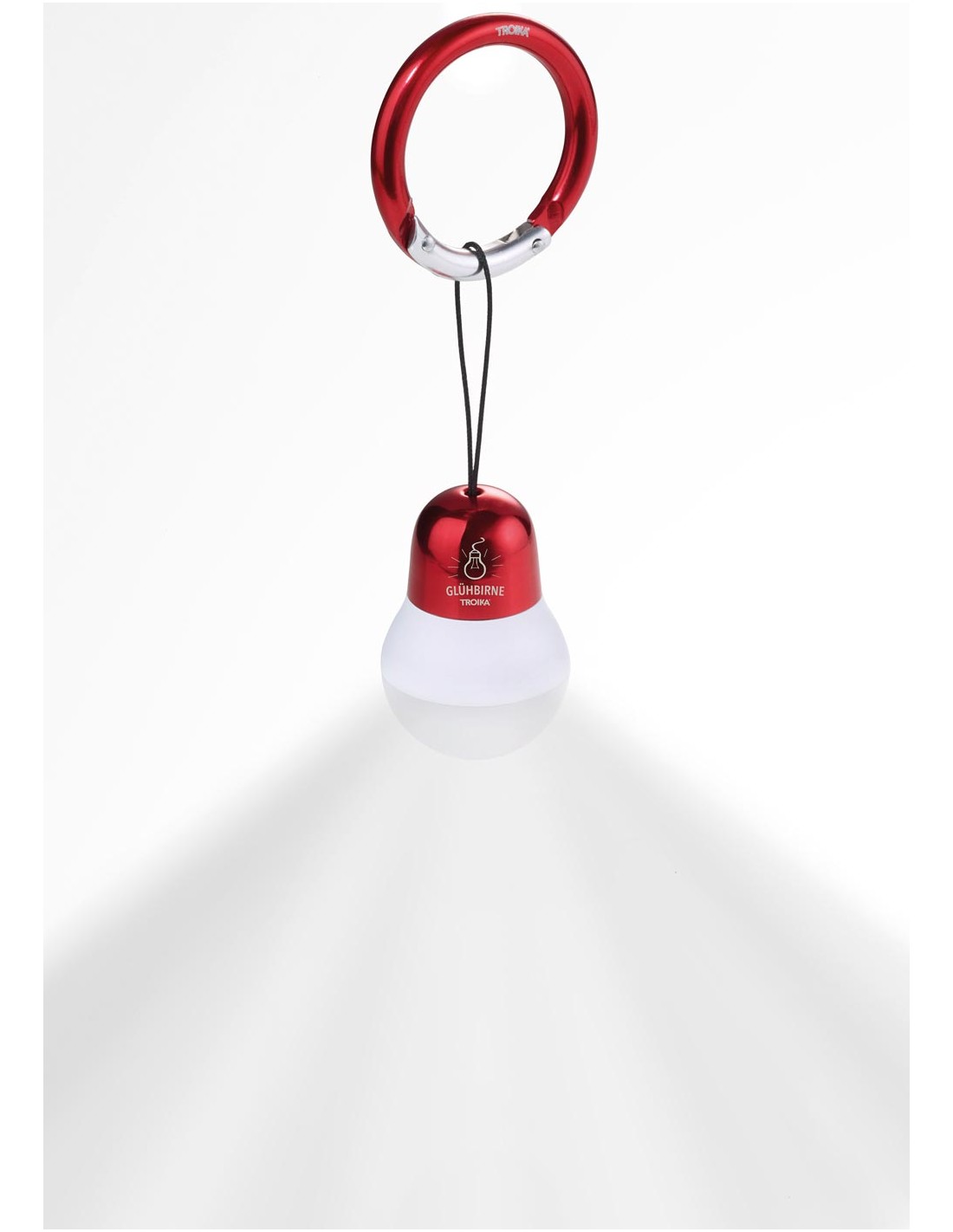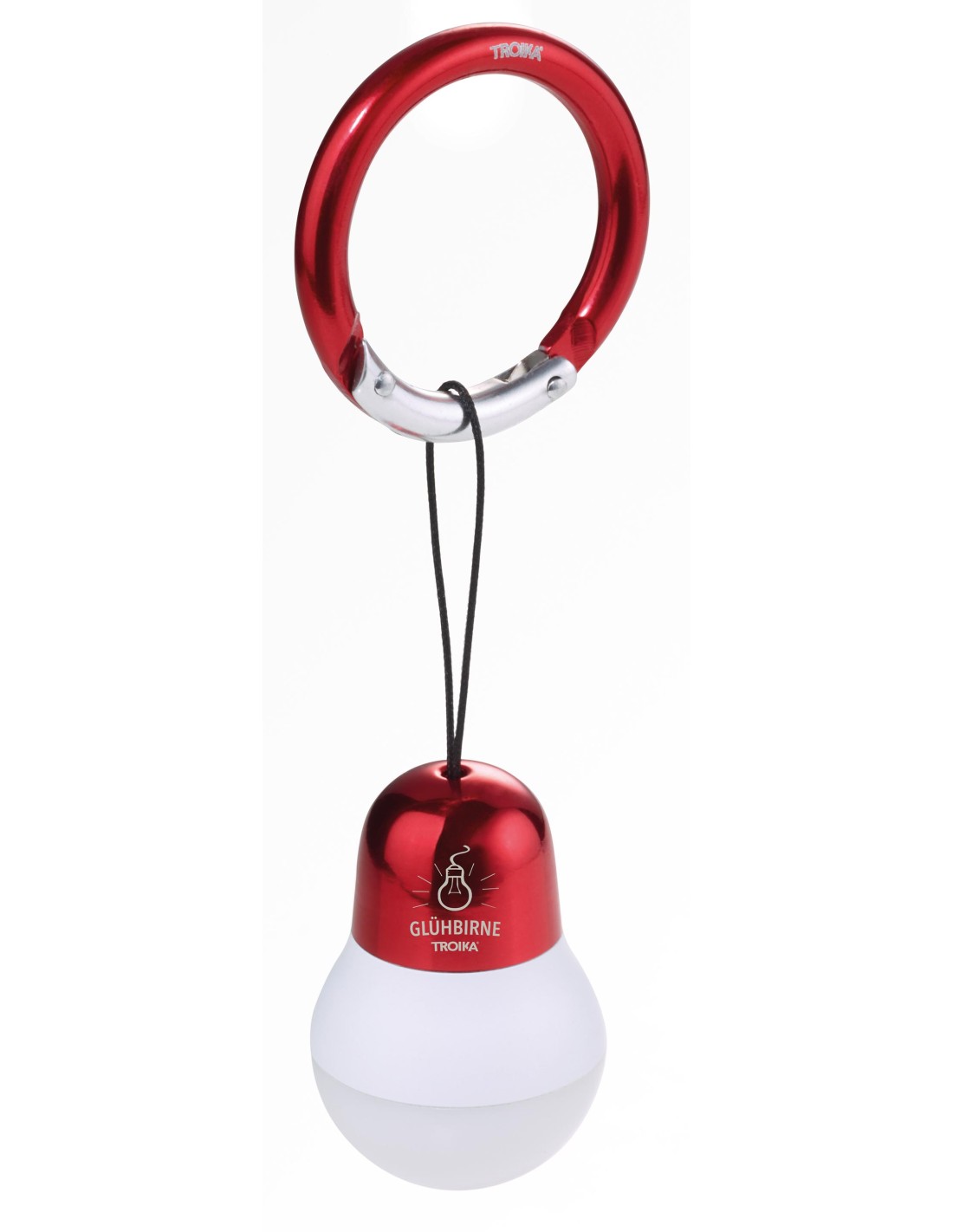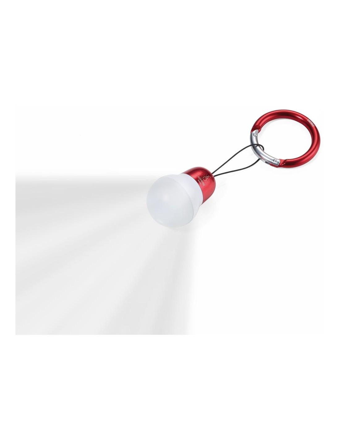 Lampe de poche, ampoule, lampe de poche (LED blanche), porte-clés, allumer/éteindre en tirant sur la lampe, mousqueton, aluminium/ABS, anodisé, brillant, rouge