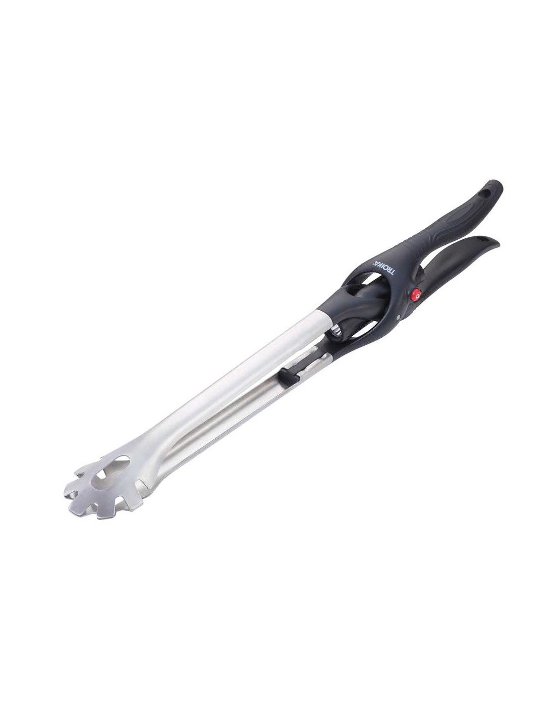 Pince à barbecue avec lampe de poche amovible, LED blanc chaud, pile AA incl., pince verrouillable, en toute sécurité alimentaire (à tester LFGB), poignée en plastique résistant à la chaleur, acier inoxydable 430, plastique, mat, argenté/noire/rouge