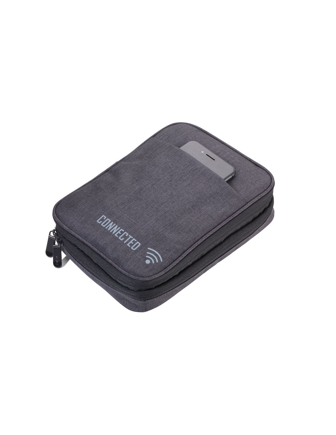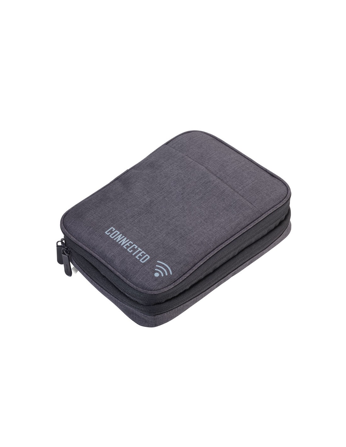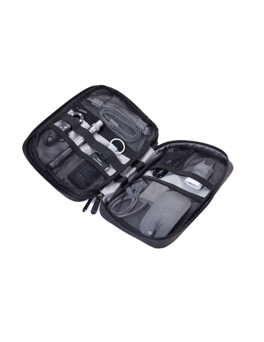 Pochette pour câbles avec 2 pochettes fermeture à glissière, 2 poches intérieures avec poches à filet et bande élastique pour accessoires (Every Day Carry), boucle à stylo, 1 compartiment extérieure, boucle pour fixer sur un chariot, polyester, gris foncé