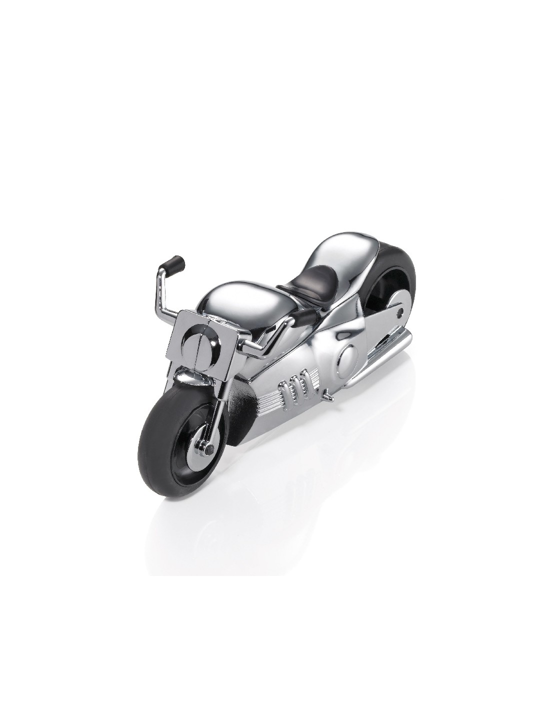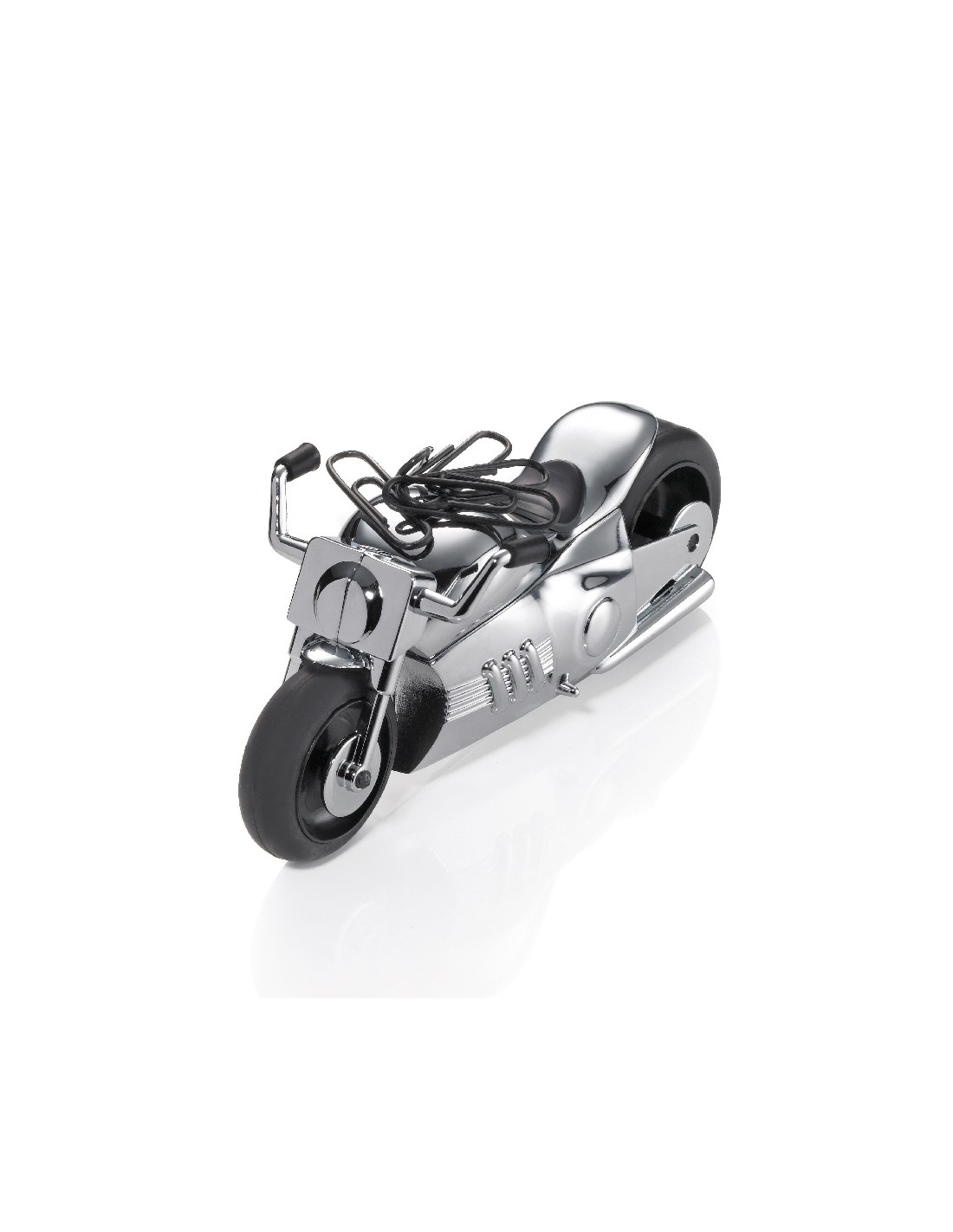 Distributeur de trombones et presse-papiers, moto, style Chopper, moteur à rétro-friction, aimant pour les trombones, incl. 5 trombones, fonte métallique, chrome, brillant, argenté/noire
