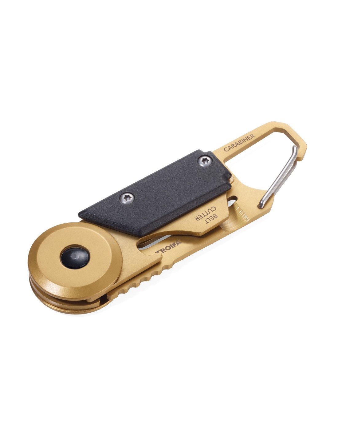 Mini-outil à 5 fonctions, couteau de poche, mousqueton, petite lame de scie, tournevis plat, ouvre-bouteille, acier inoxydable 420, aluminium, noire/or