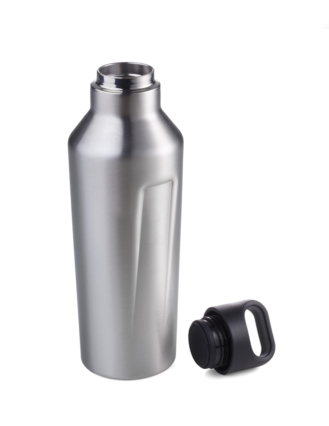 Bouteille isotherme, isolation double paroi avec vacuum, 600 ml, approuvé pour applications alimentaires, acier inoxydable 201, acier inoxydable 304, polypropylène, silicone, mat, argenté