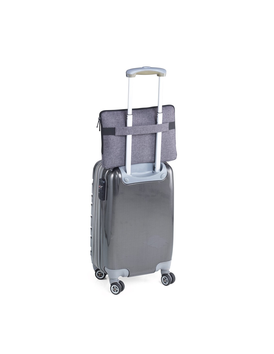 Sacoche portfolio avec fermeture à glissière, 1 poche pour documents, papiers, ordinateurs portables, tablettes (jusqu'à 13''), 1 poche avec boucles à bande élastique pour accessoires (Every Day Carry), poignée, boucle pour fixer sur un chariot, polyester, anthracite/noire