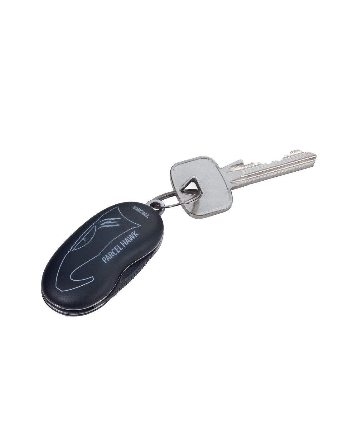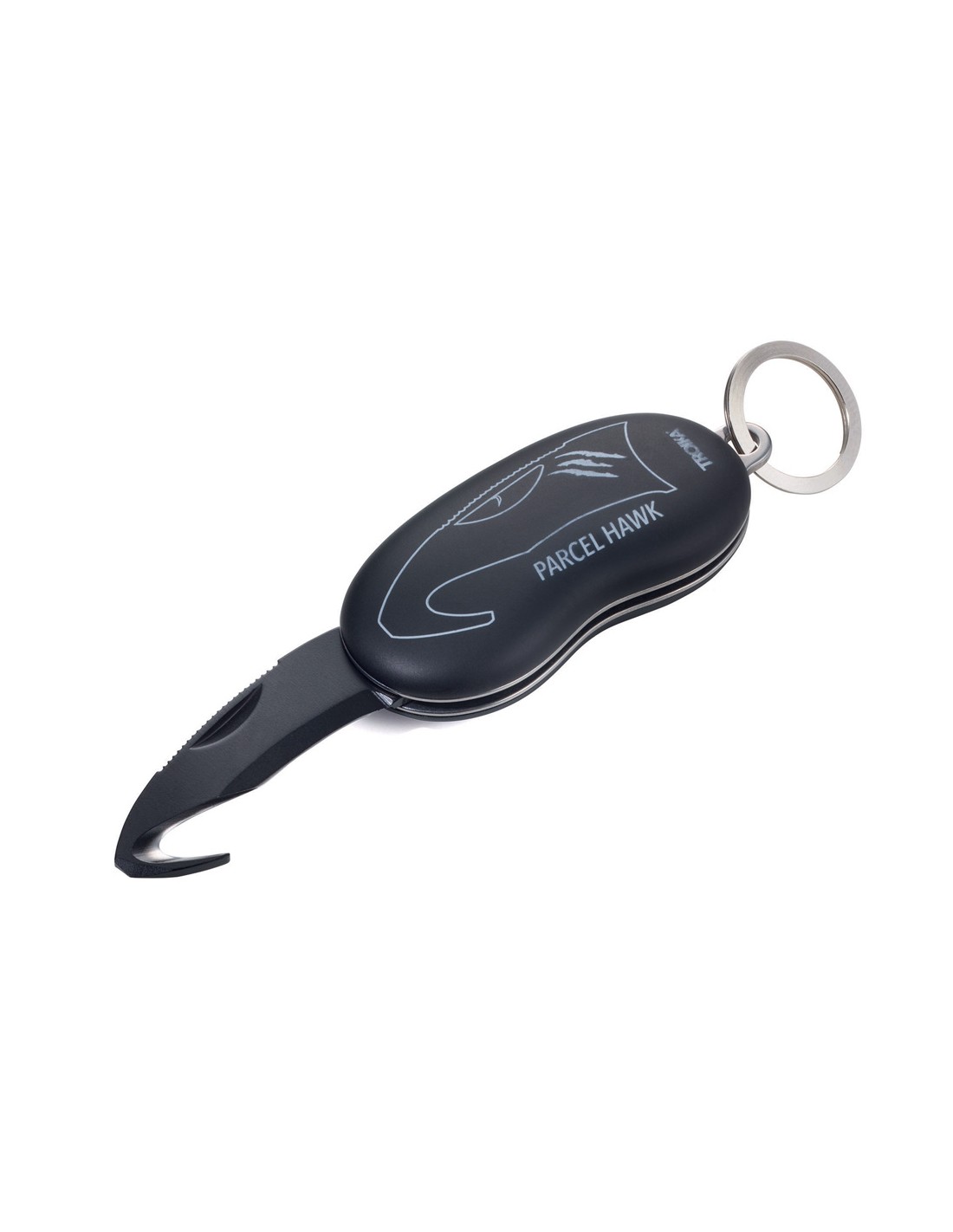 Couteau de poche avec un petit anneau pour clé, lame 12C27 Sandvik Stahl, acier inoxydable 420, acier Sandvik 12c27, plastique, mat, noir