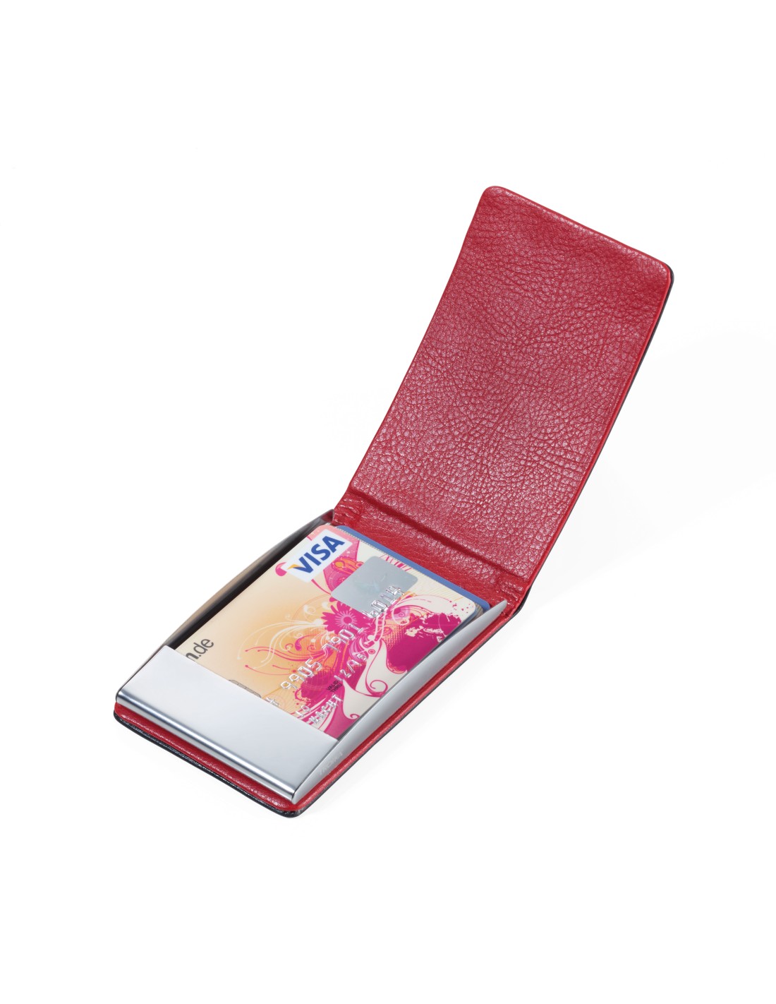 Etui pour cartes de visite, fermeture magnétique, protection de lecture (pour les puces RFID), acier, similicuir, noire/rouge