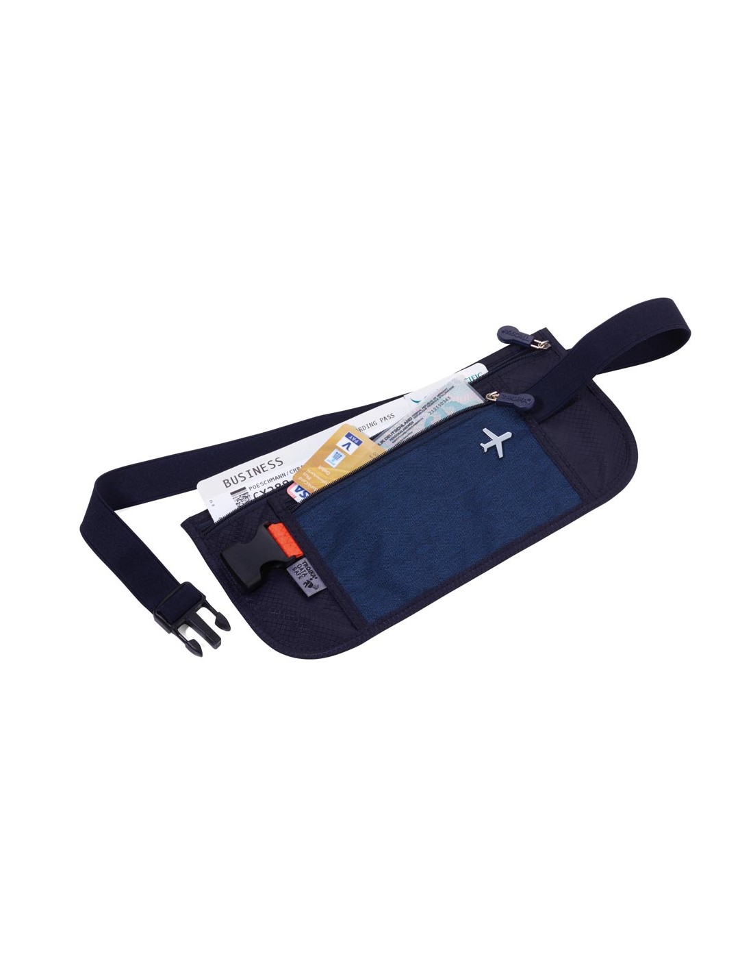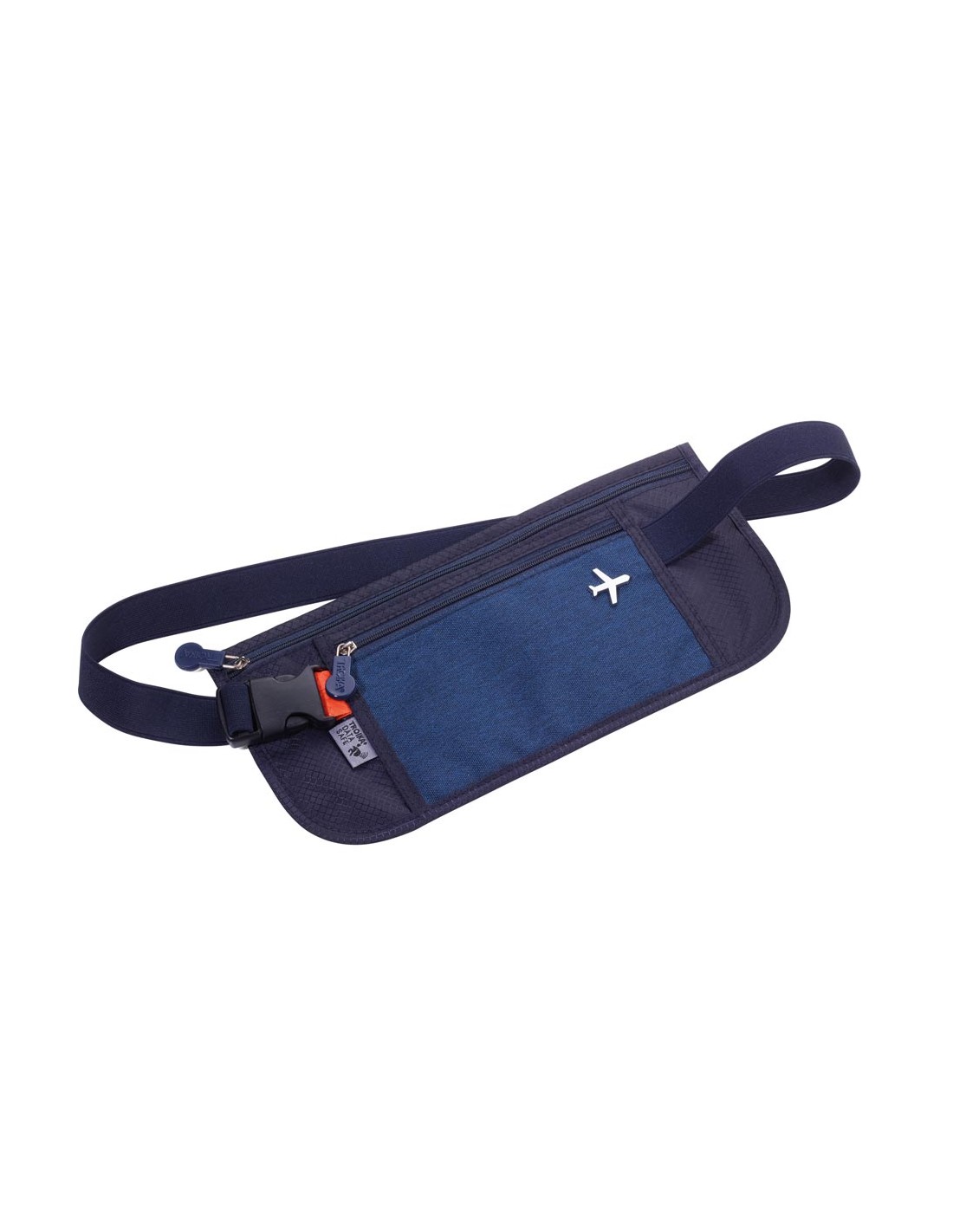 Sac banane avec 2 poches à fermeture à glissière, 1 compartiment avec protection de lecture (pour les puces RFID), idéal pour tickets, passeport, carte d'identité, permis de conduire, carte d'embarquement, polyester, bleu