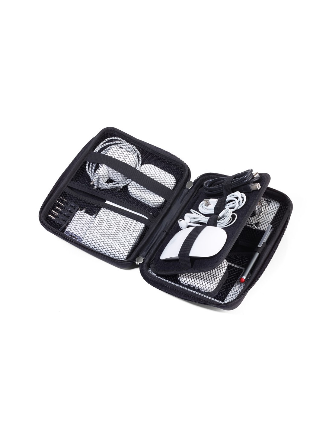 Étui de rangement avec fermeture à glissière, 3 poches intérieures, 6 boucles à bande élastique, intercalaire (intérieur), similicuir, velours, noire