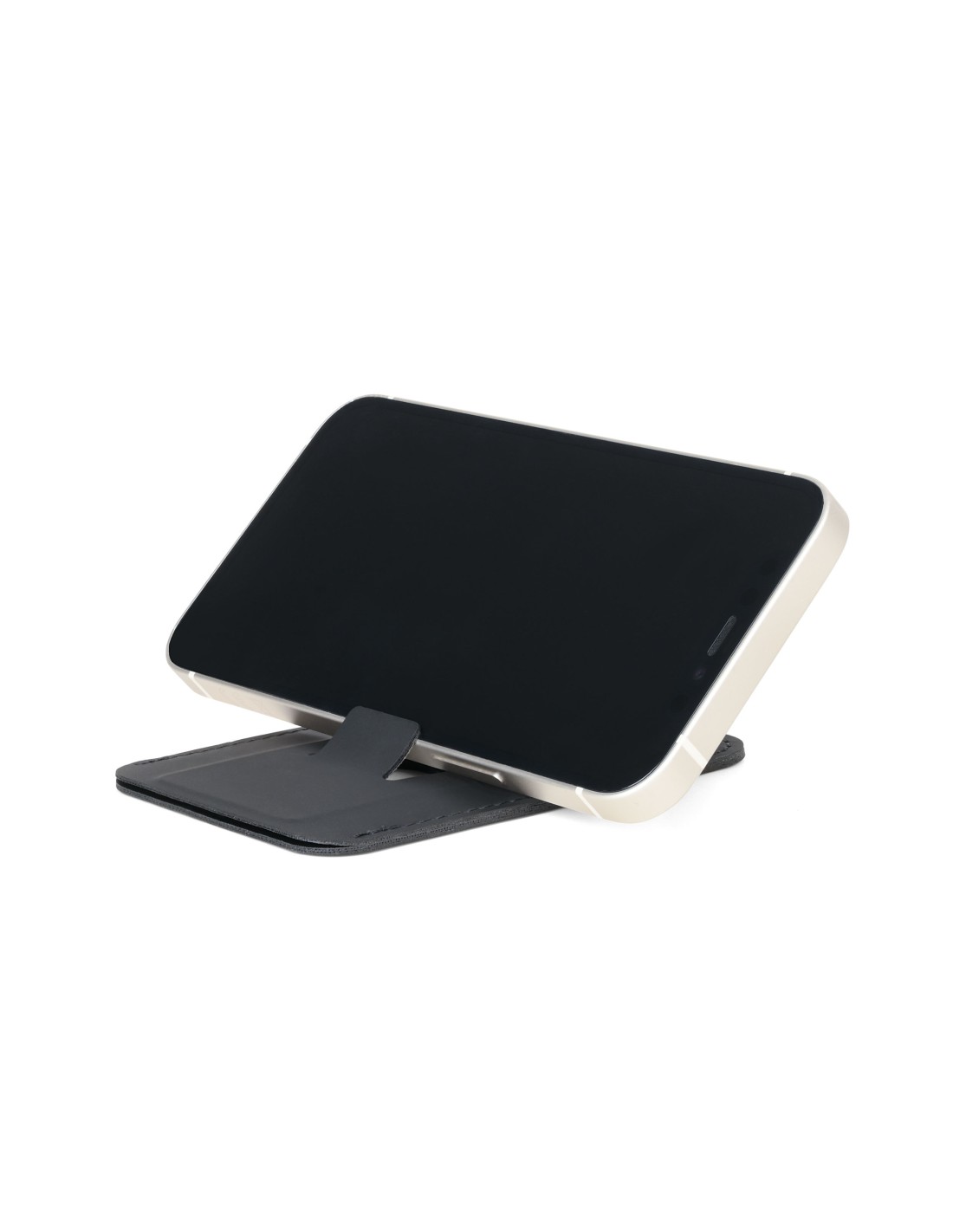 Étui pour cartes MagSafe, 1 à 2 cartes à fixer magnétiquement sur le smartphone, fonctions de positionnement pour redresser le téléphone à l'horizontale et à la verticale, similicuir, noire
