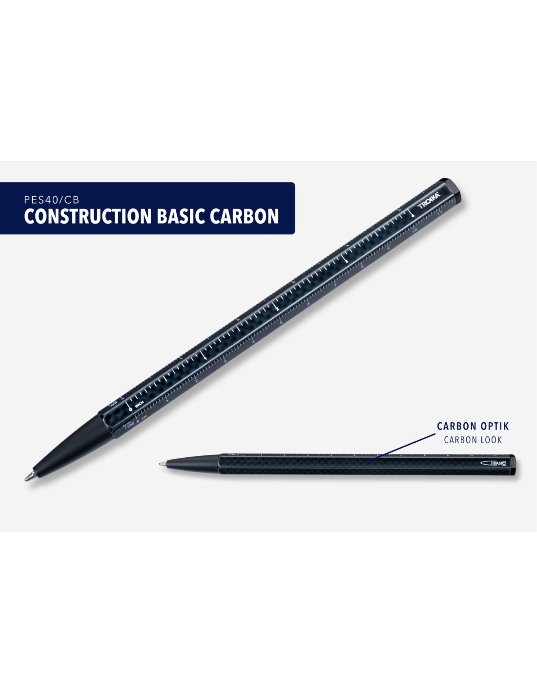 Stylo à bille multitâche avec mine D1 noire, règle en centimètres/pouces, échelle 1:20/1:50, changement de mine facile, aluminium, métal, brillant, aspect carbone
