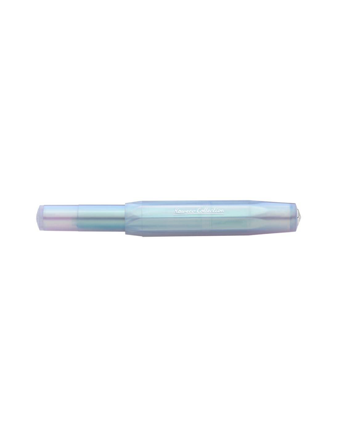 Aspect nacré irisé. Le Kaweco Iridescent Pearl - un stylo plume aux couleurs insoupçonnées : Selon l'angle de vue de l'observateur et la lumière incidente, l'instrument d'écriture brille d'une couleur changeante unique. Imitant l'effet optique de la nacre, le matériau translucide du stylo plume scintille dans des couleurs allant du vert-bleuâtre au rose. L'emballage du stylo est assorti d'un film irisé. L'optique imite les stries qui apparaissent dans le plastique grâce aux pigments et qui contribuent à l'aspect unique du stylo.