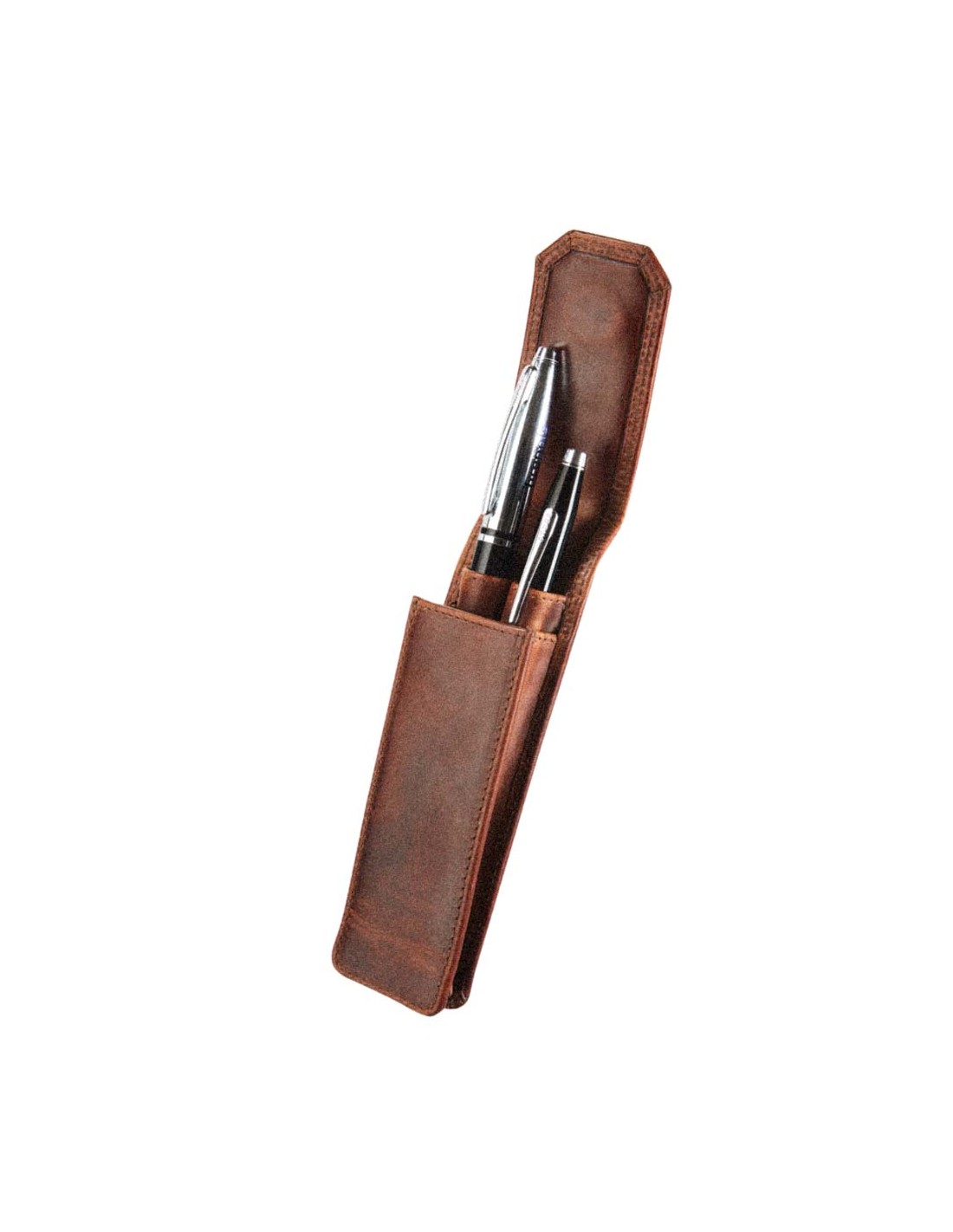 Étui en cuir pour 2 stylos. Fabriqué en cuir de première qualité au toucher naturel. Un cuir pleine fleur à tannage végétal, huilé pull-up. Parfaitement huilé, permettant aux griffes de s’estomper par frottement.