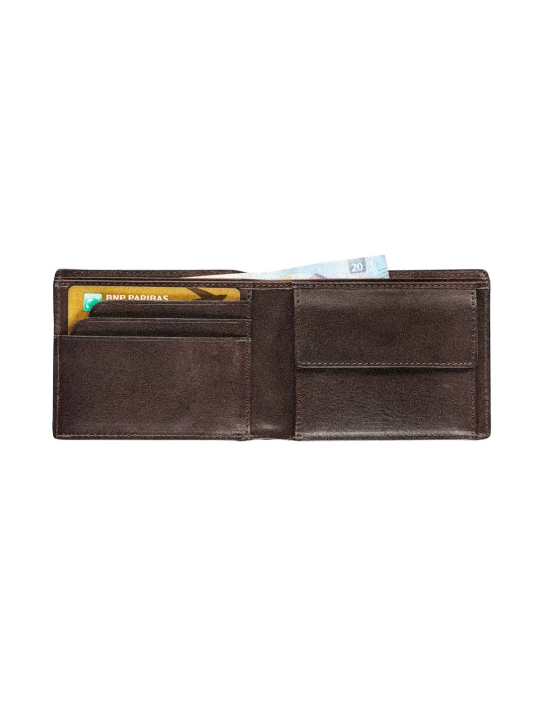 - Cuir de vachette pleine fleur - Cuir à tannage végétal - Protection RFID - 3 fentes pour cartes de paiement - 2 poches à billets - Compartiment à monnaie - 11 x 8,5 cm