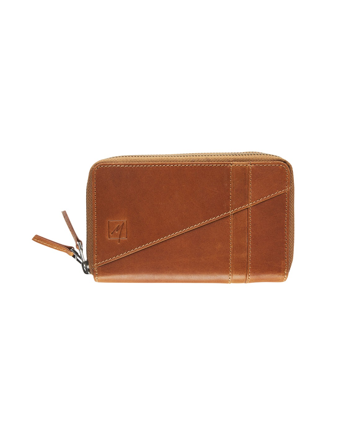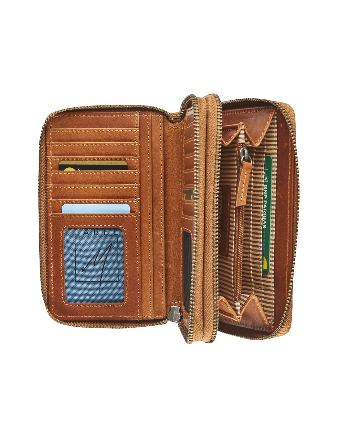 LABEL M Florence Porte-monnaie double avec fermeture éclair - 2 fenêtres - 16 cc, cognac