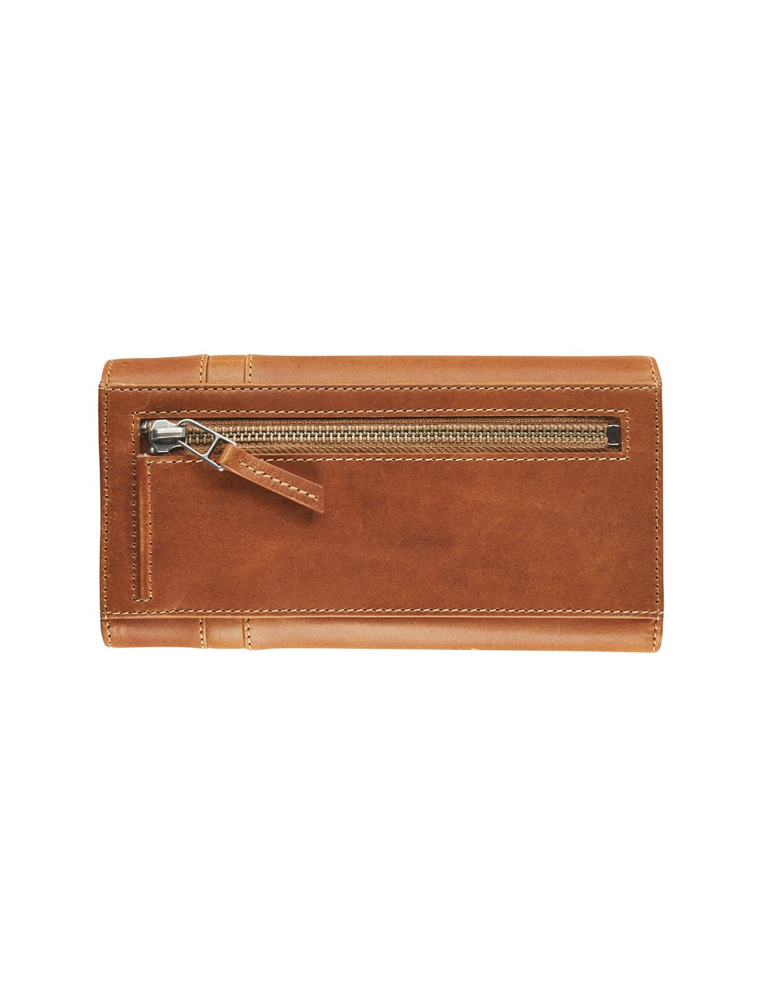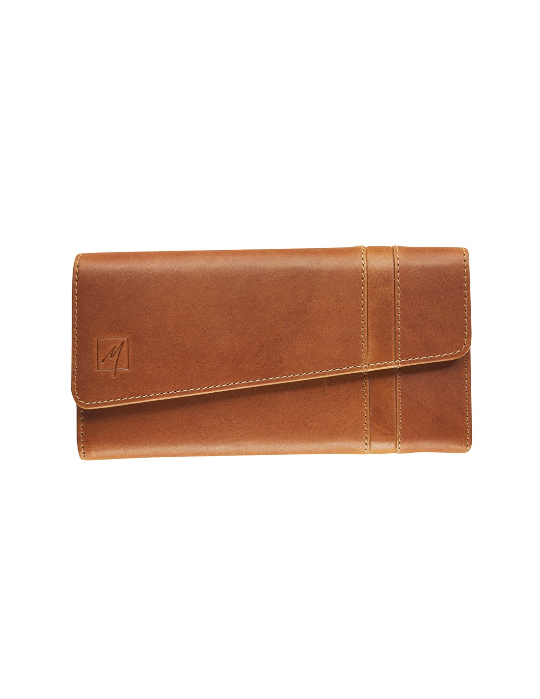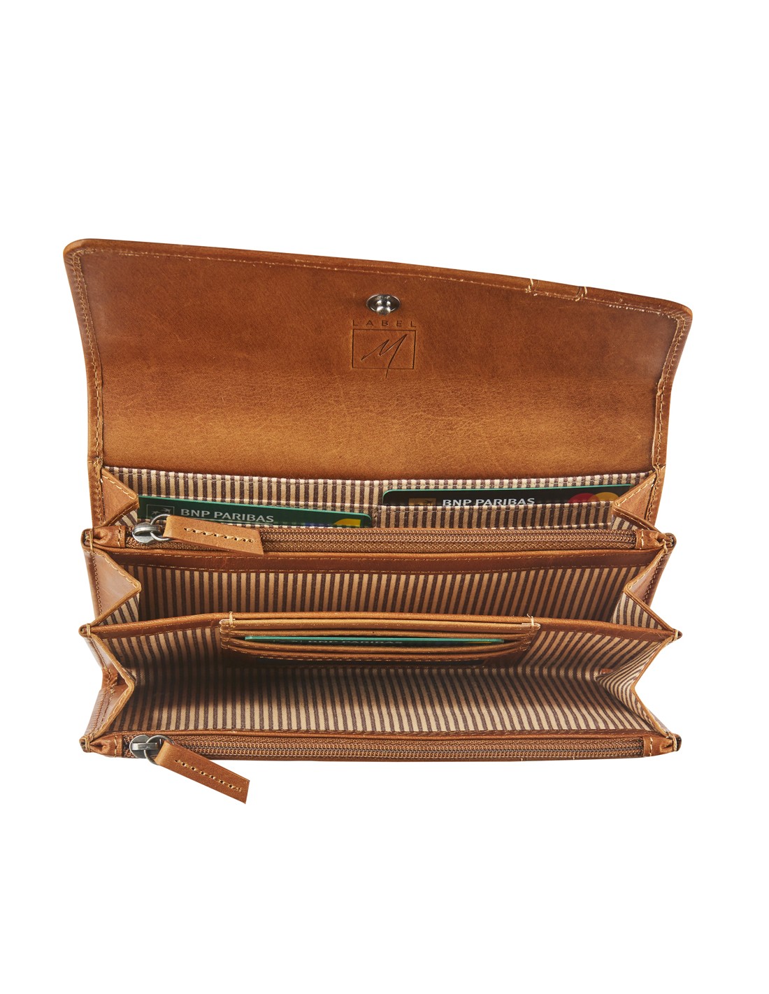 LABEL M Florence Porte-monnaie long avec bouton-pression - 1 fenêtre - 9 cc - 5 compartiments, cognac