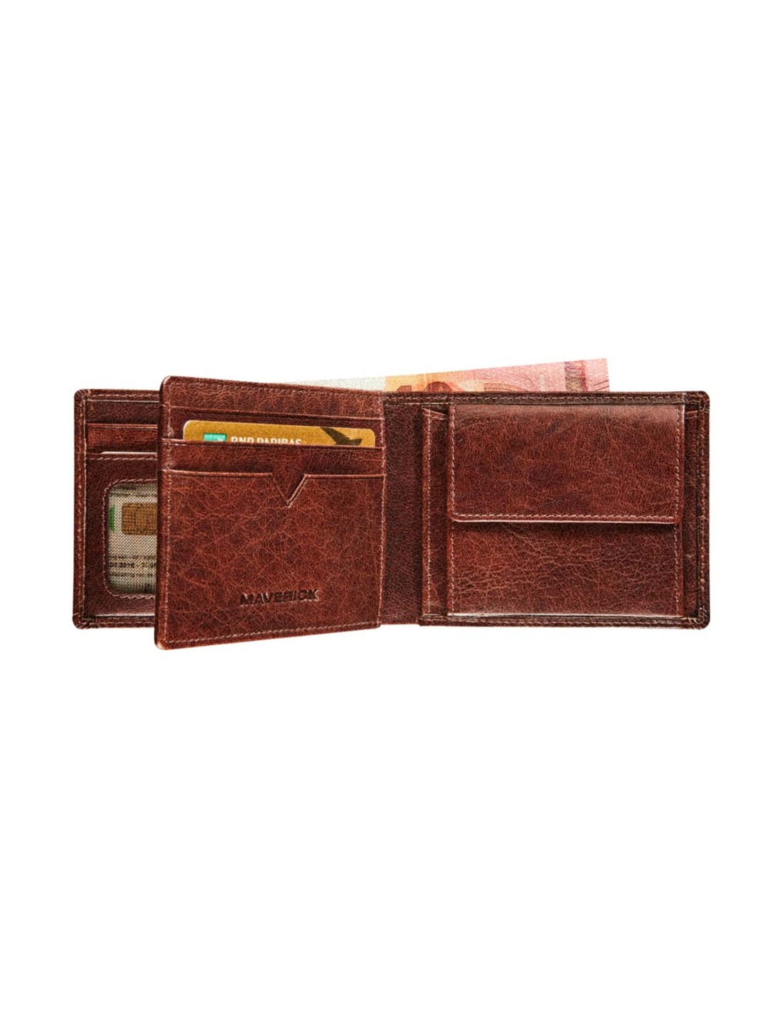 MAVERICK ROUGH GEAR porte-dollar cuir anti-piratage avec poche monnaie - brun