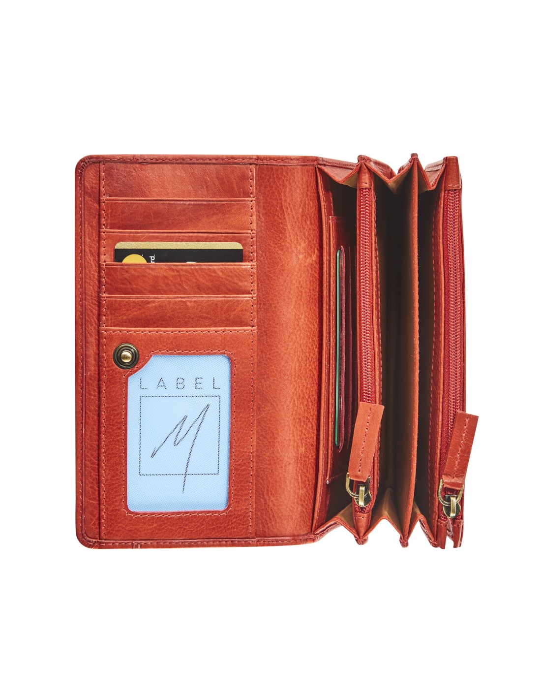 LABEL M Savannah porte-monnaie accordéon - 1 poche fenêtre - 8 cc - 3 fermetures éclair, cognac