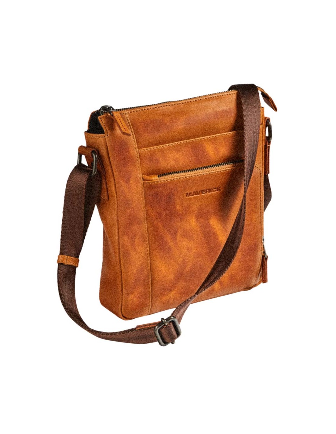 Sac à bandoulière en cuir, avec divers compartiments. Pratique pour garder toutes vos affaires importantes à portée de main.