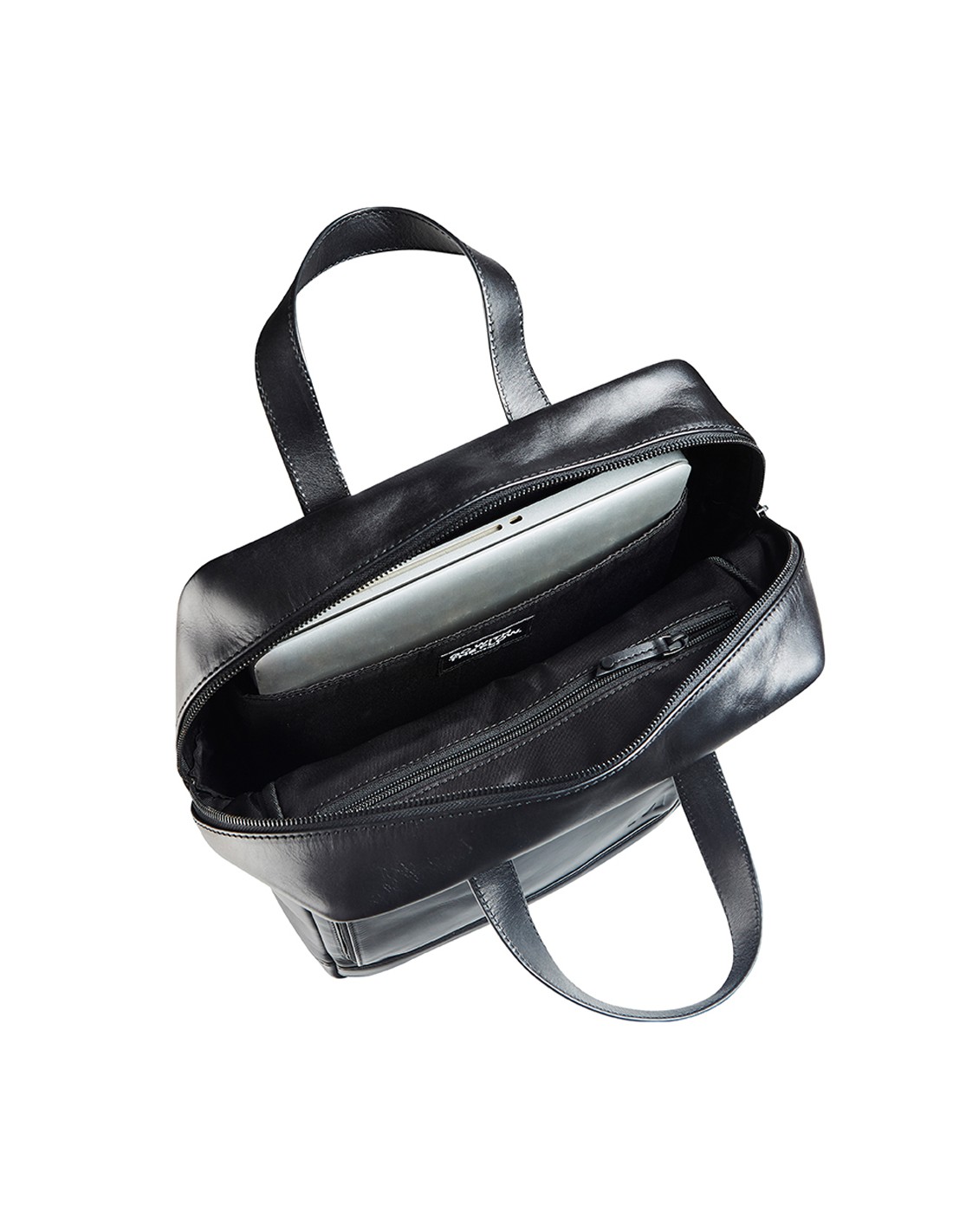 - Cuir de vachette pleine fleur - Cuir à tannage végétal - Ordinateur portable 15'6" (taille max. 37 x 25 cm) - Organisateur interne - Compartiment avant facile d’accès avec fermeture éclair - Housse imperméable - noir