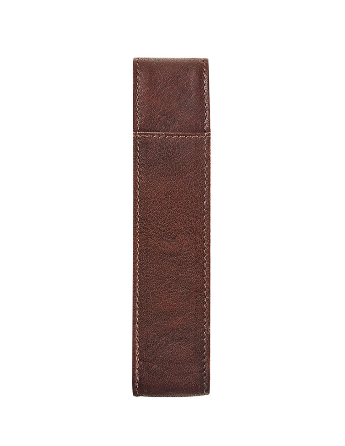 Élégant étui en cuir, pour 1 stylo. La qualité prime sur la quantité. Fabriqué en cuir de buffle pleine fleur à tannage végétal. Solide et robuste. Avec un grain marqué et un effet bicolore. Un esprit inimitable, grâce aux coutures à la main de couleurs contrastées.