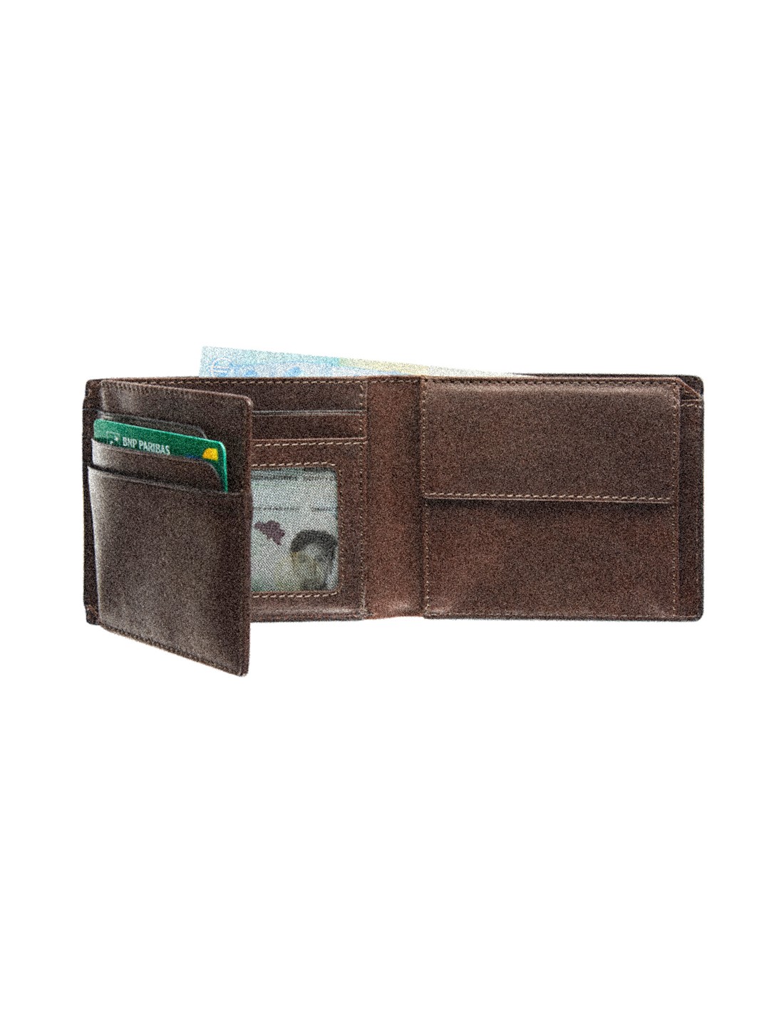 - Cuir de vachette pleine fleur - Cuir à tannage végétal - Protection RFID - 7 fentes pour cartes de paiement - 1 poche pour carte d’identité - 2 poches à billets - Compartiment à monnaie - 11 x 8,5 cm - Brun