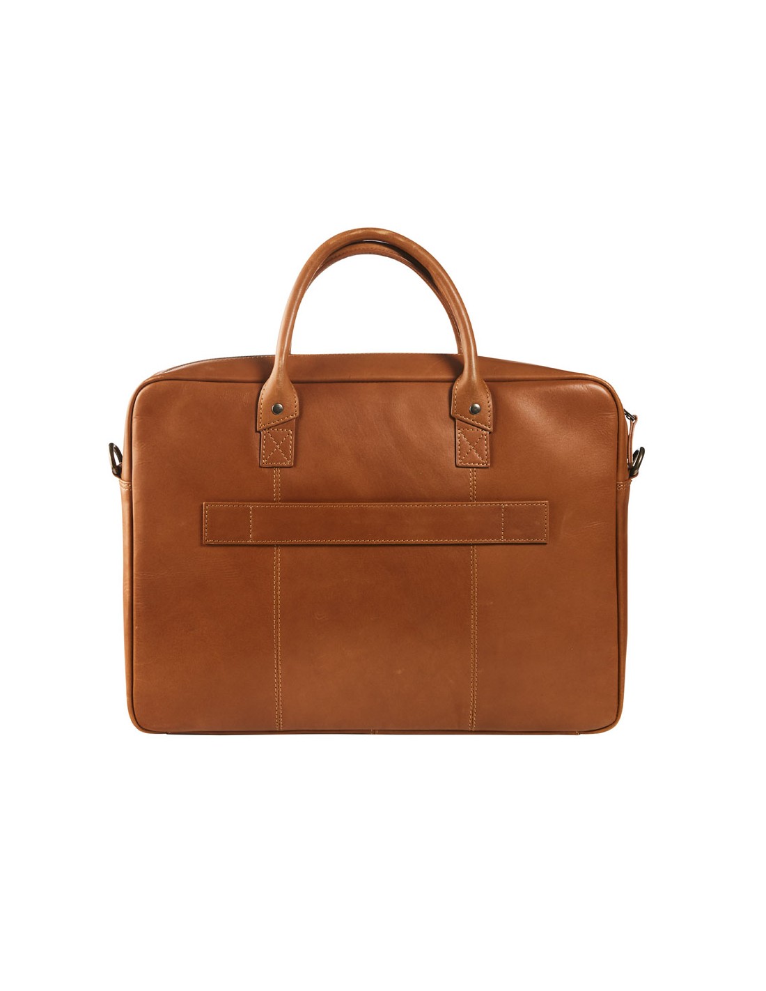 - Cuir de vachette pleine fleur - Cuir à tannage végétal - Pour ordinateur portable de 15,6" (taille max. 37 x 25 cm) - Organisateur interne - Bandoulière amovible - Sangle pour fixation à un trolley - cognac