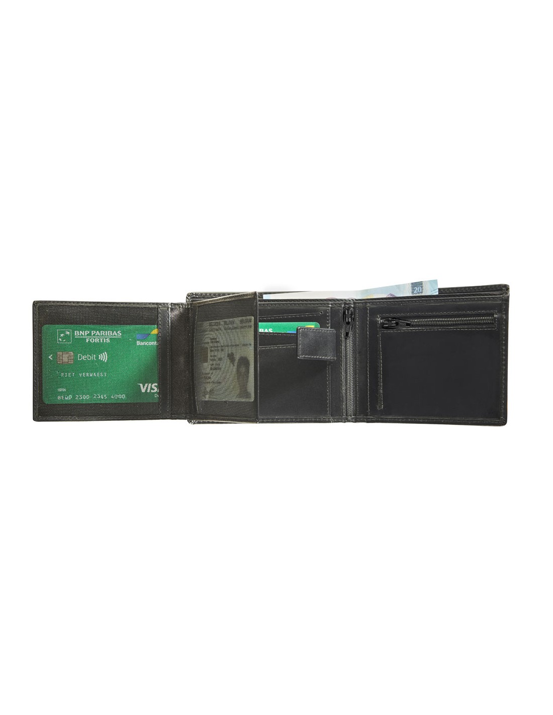 MAVERICK All Black porte-dollar cuir RFID avec fermeture éclair et des pochettes cartes crédit supplémentaires, noir