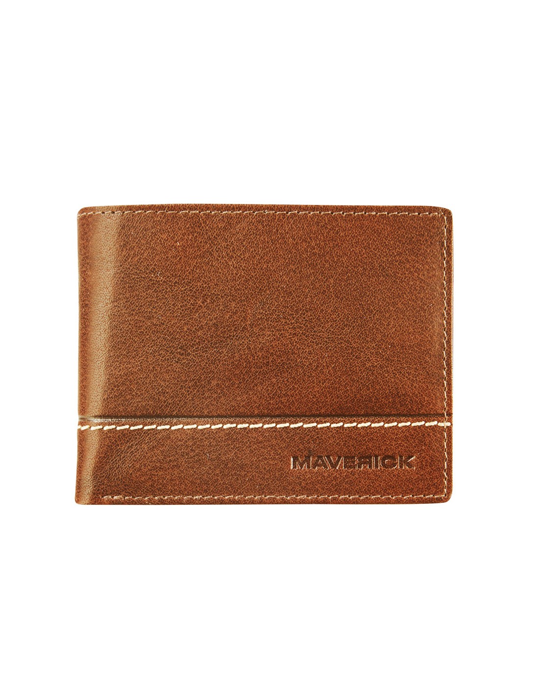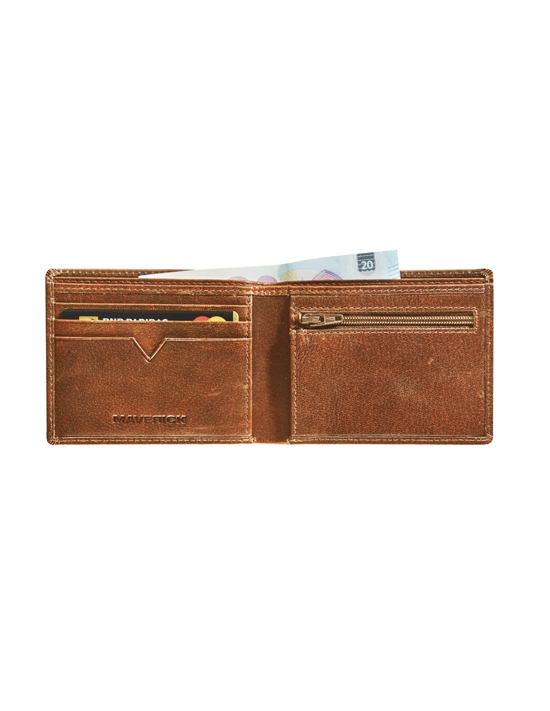 MAVERICK ROUGH GEAR porte-dollar compact cuir RFID avec fermeture éclair- cognac
