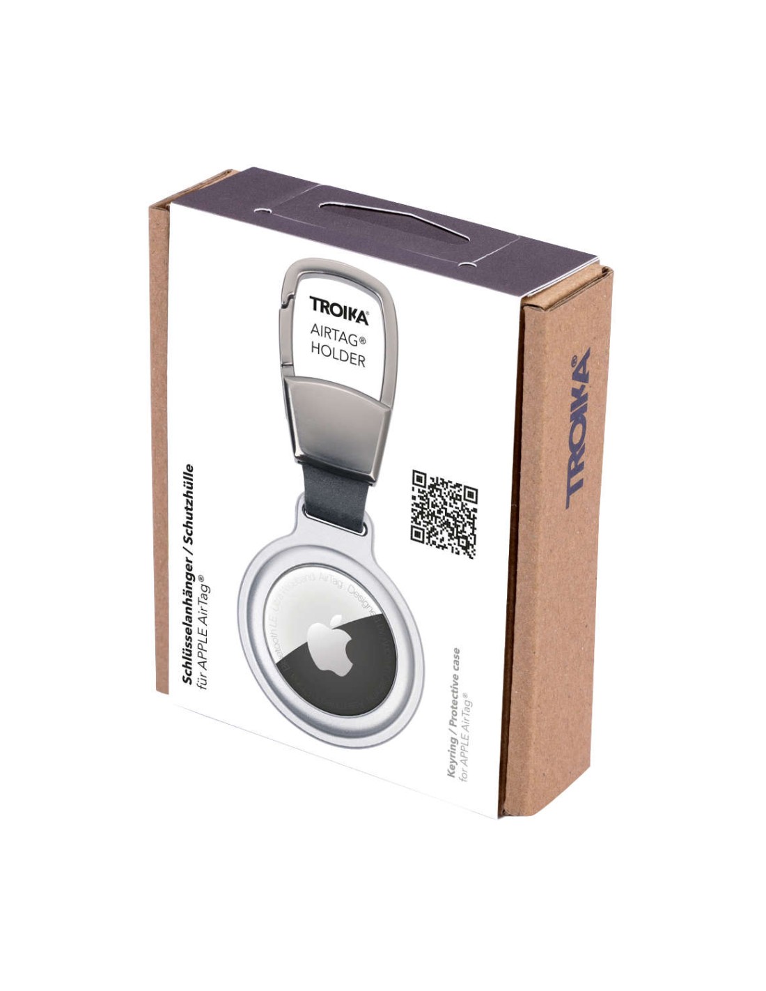 Porte-clés / housse de protection pour APPLE AirTag®, avec mousqueton pour une fixation flexible sur : porte-clés, sac à dos, sacoche d'ordinateur portable, etc., encoche avec fermeture magnétique, aluminium, mat, argenté