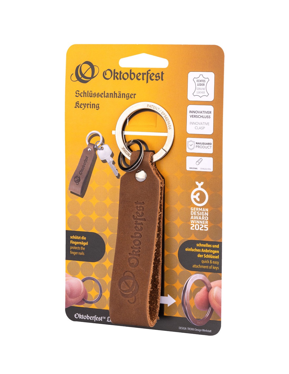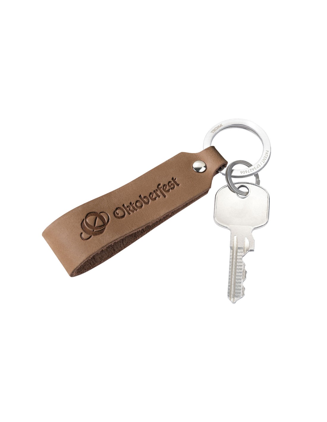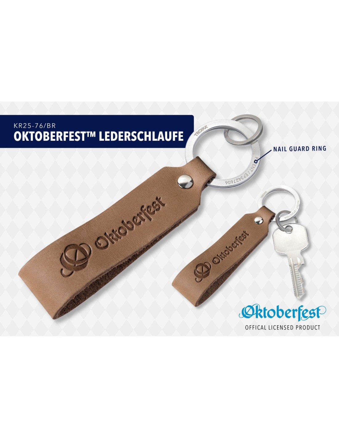 Porte-clés dragonne en cuir, motif : OKTOBERFEST, mise en place rapide & facile des clés grâce au mécanisme d'ouverture breveté (TROIKA NAIL GUARD), cuir (Made in Germany), marron