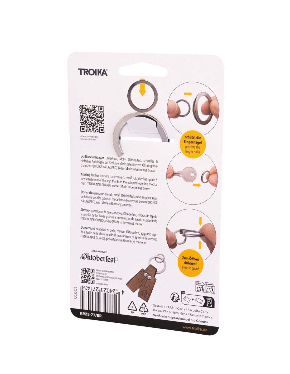 Porte-clés pantalon en cuir, motif : OKTOBERFEST, mise en place rapide & facile des clés grâce au mécanisme d'ouverture breveté (TROIKA NAIL GUARD), cuir (Made in Germany), marron