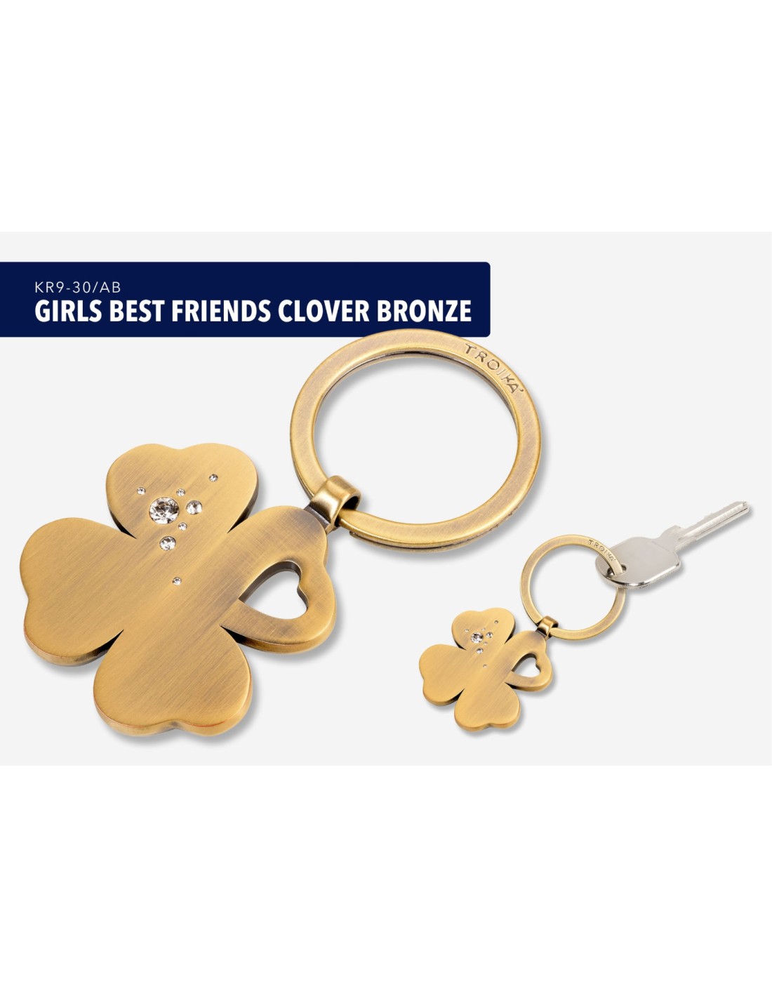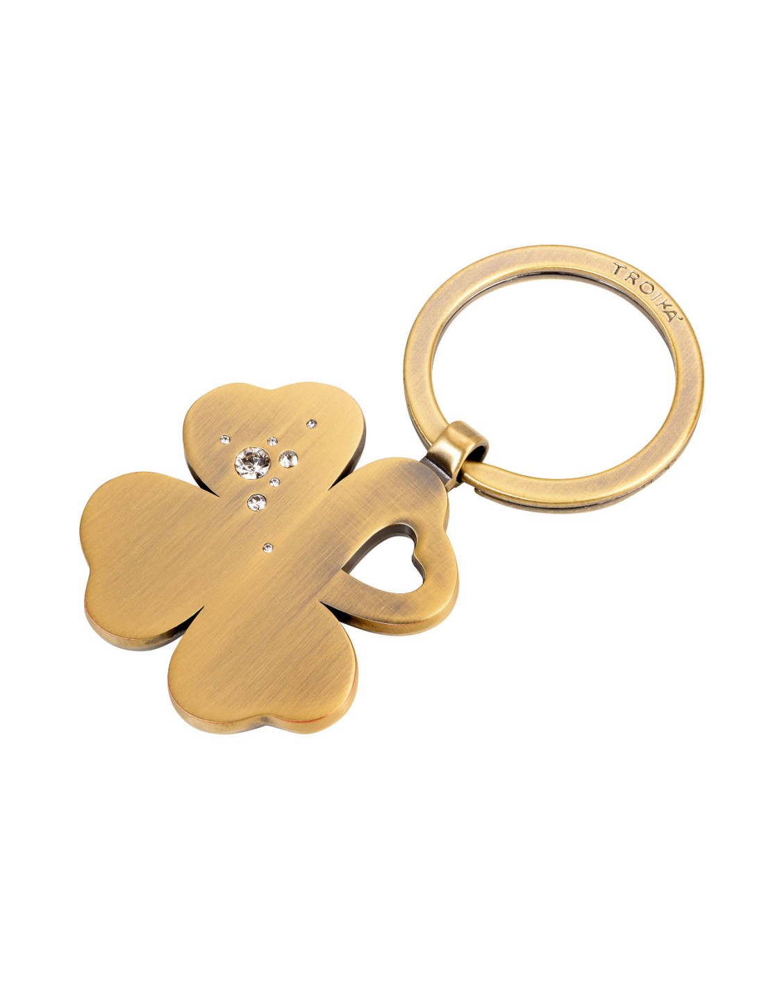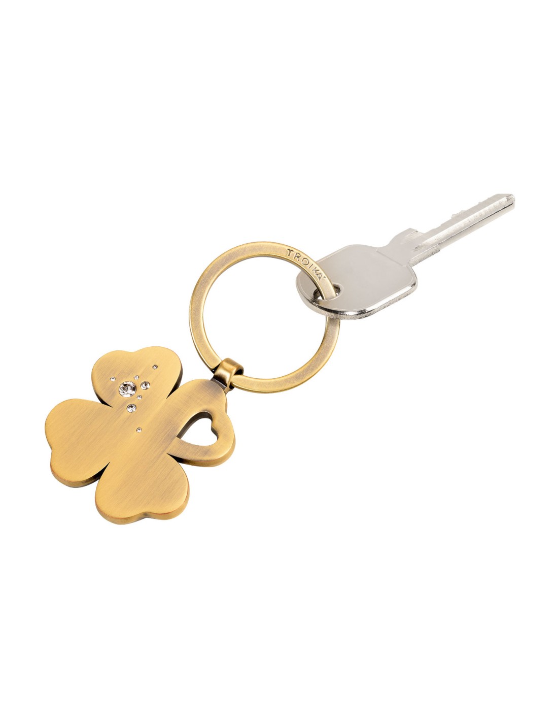 Porte-clés, trèfle à quatre feuilles, made with SWAROVSKI® ELEMENTS, fonte métallique, chrome, mat, Aspecto dorado antiguo