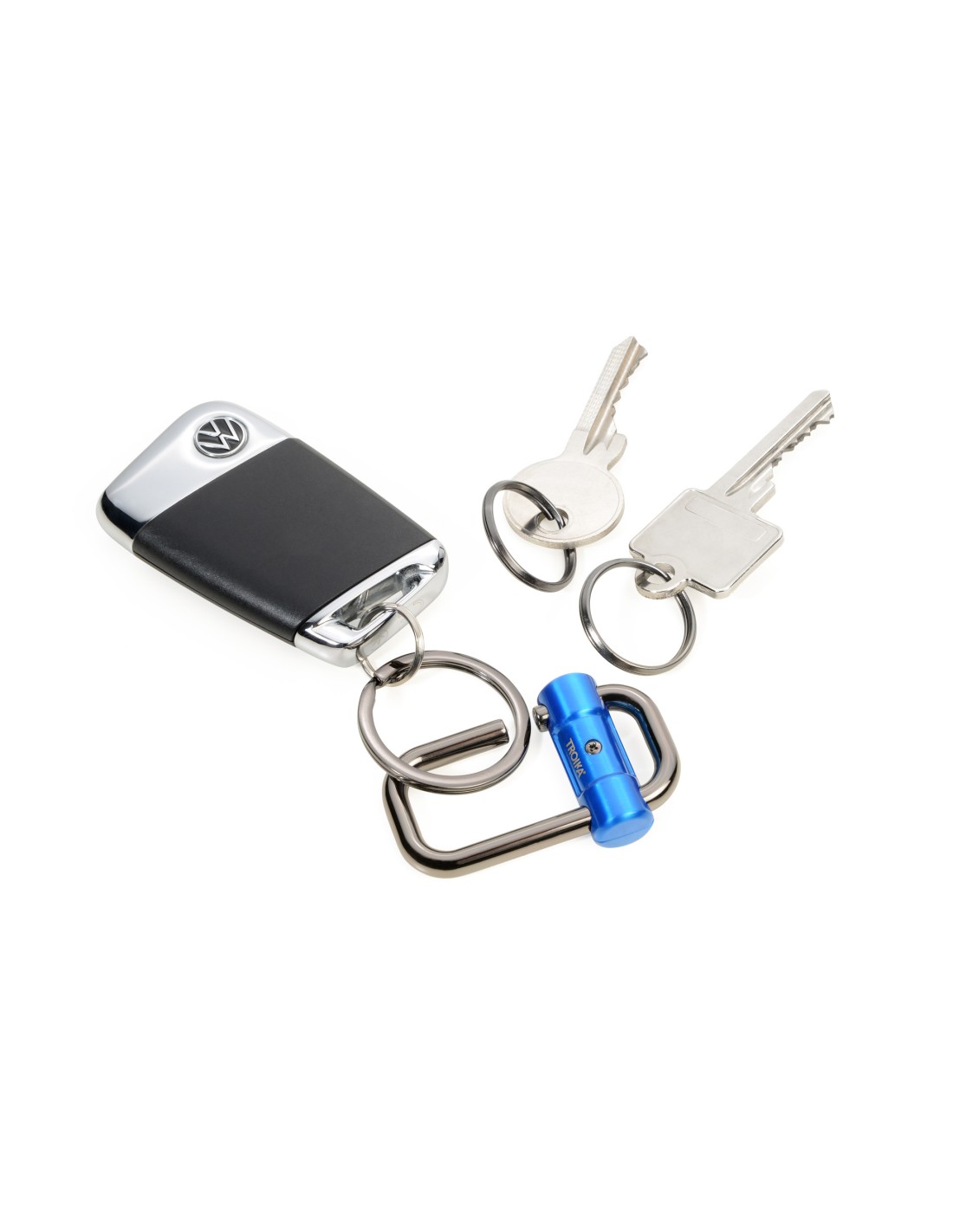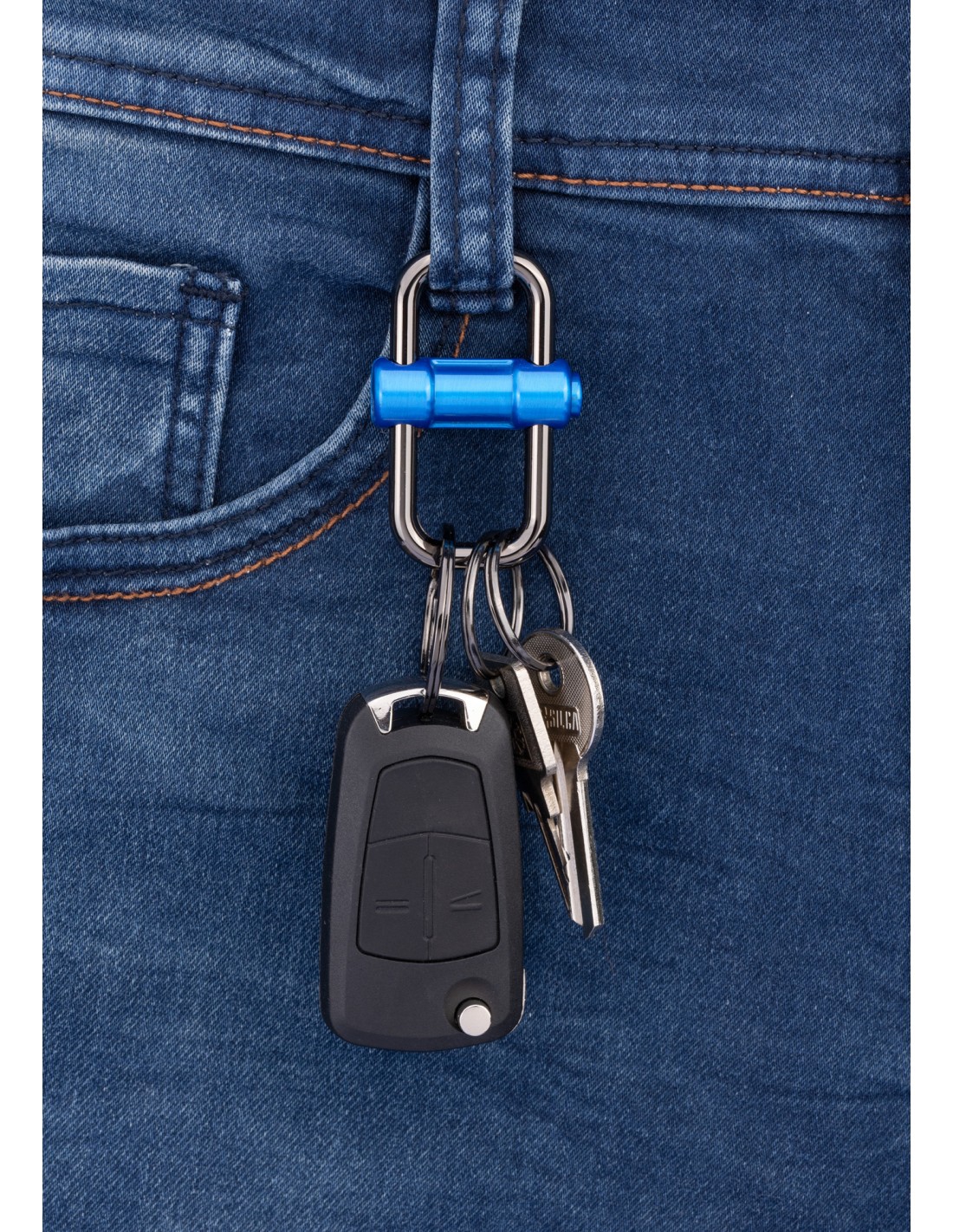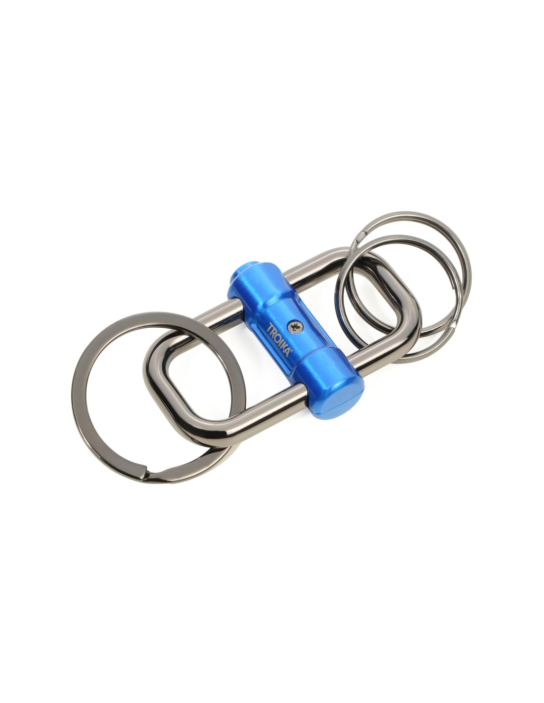 Porte-clés avec 3 anneaux pour clés en 2 tailles, fermeture coulissante pour une organisation facile des clés, déplacer la partie médiane des deux côtés libère les anneaux, fonte métallique, brillant, bleu/gunmetal