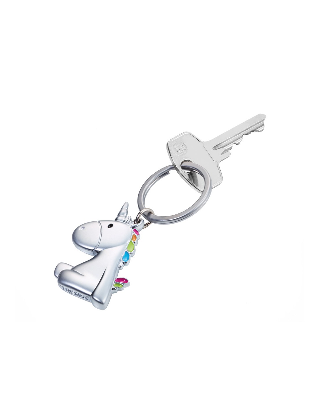 Porte-clés, licorne, chrome, mat, argenté/multicolore