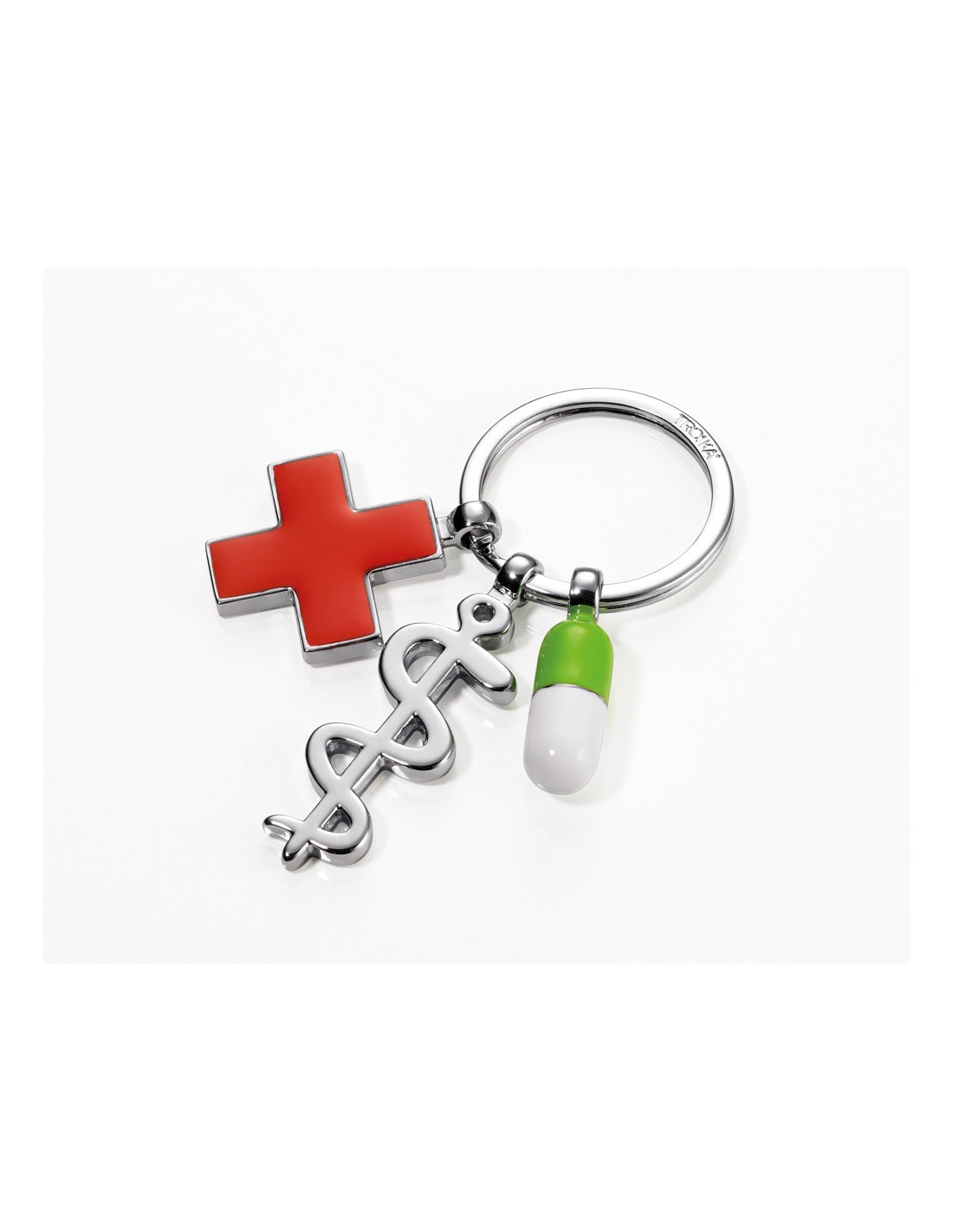 TROIKA GET WELL Porte-clés 3 breloque Asclépios, croix, pilule, gris brillant/multicolore
