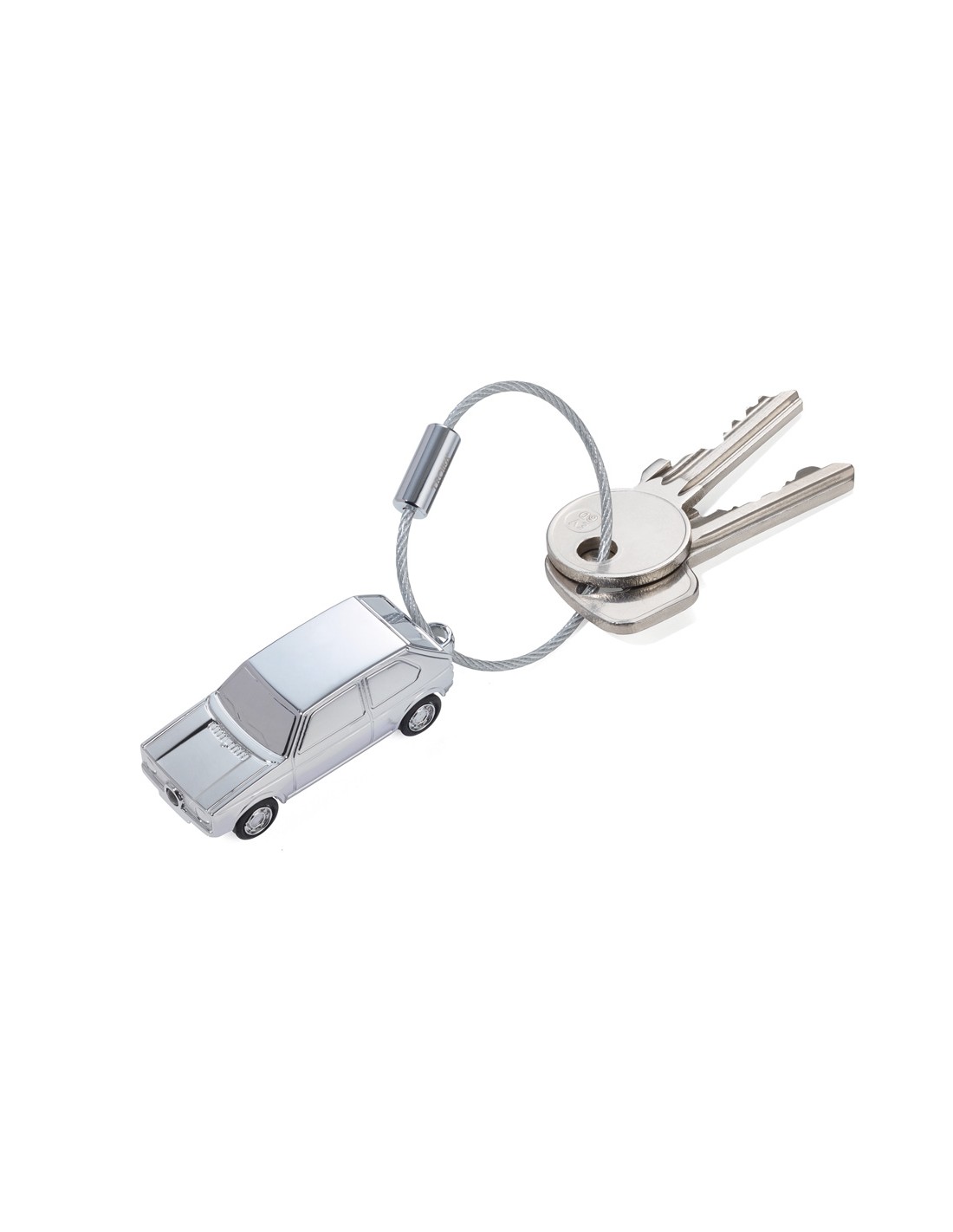 Porte-clés avec LED blanc, Volkswagen Golf GTI 1976, fonte métallique, chrome, brillant, argenté