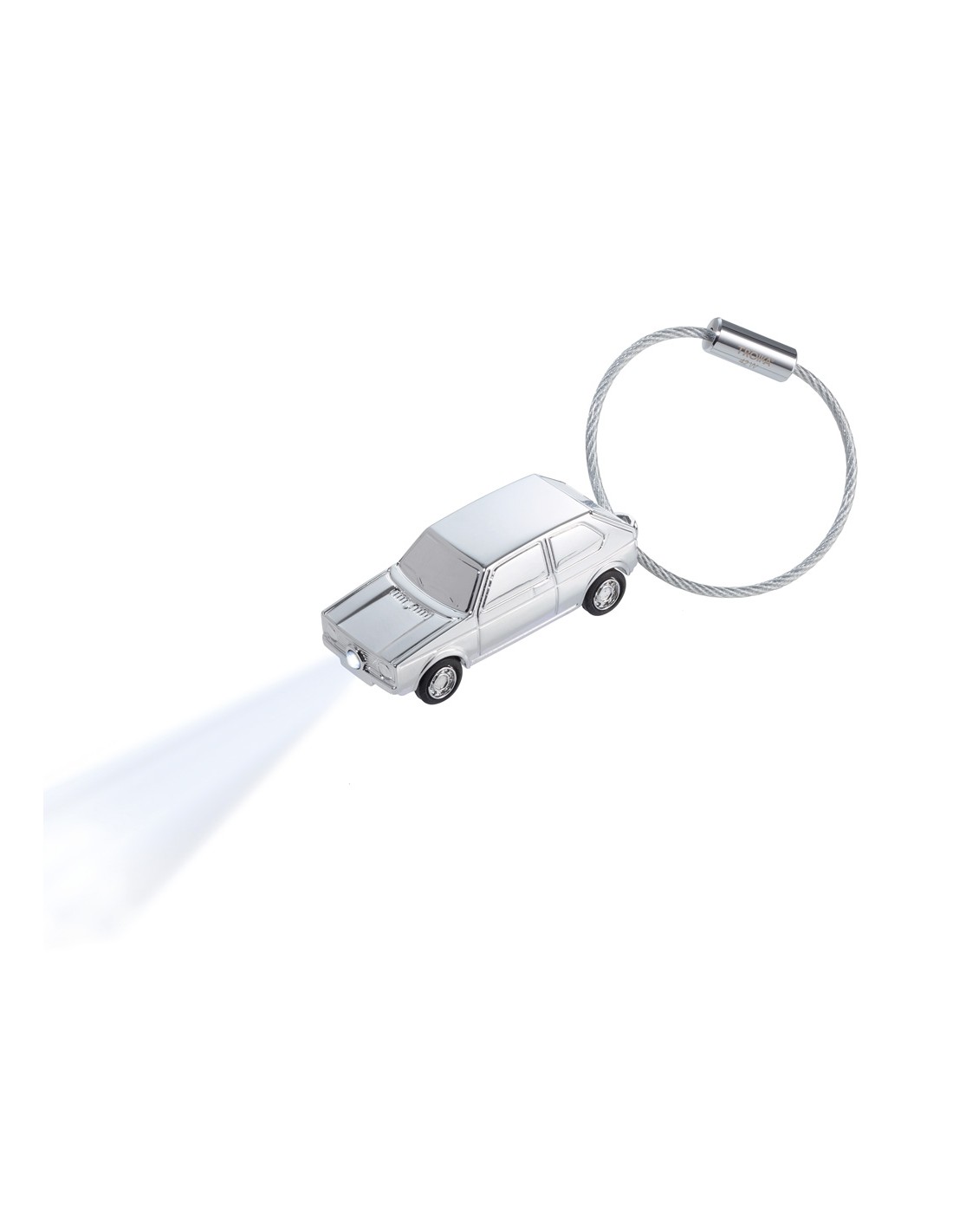 Porte-clés avec LED blanc, Volkswagen Golf GTI 1976, fonte métallique, chrome, brillant, argenté