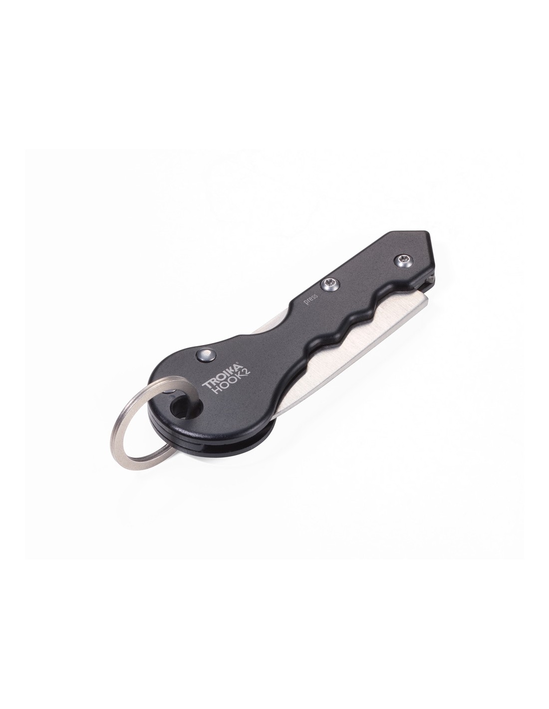 TROIKA HOOK2 Couteau de poche avec anneau pour clé, gris mat/noir