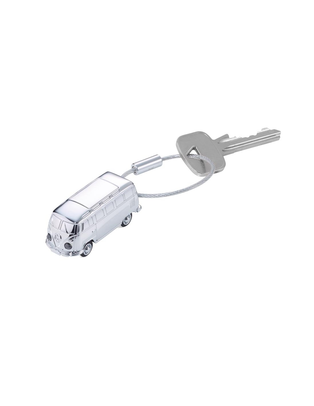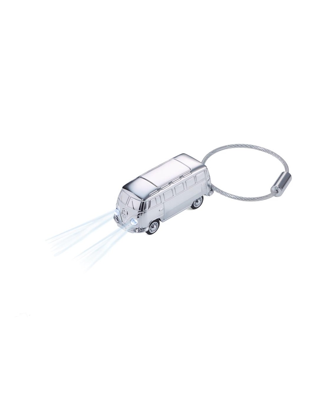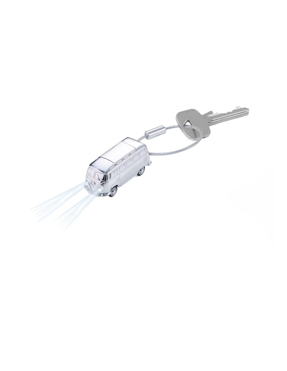 Porte-clés avec lumière LED (blanche), VW Combi (Volkswagen T1, 1962), fonte métallique, chrome, brillant, argenté
