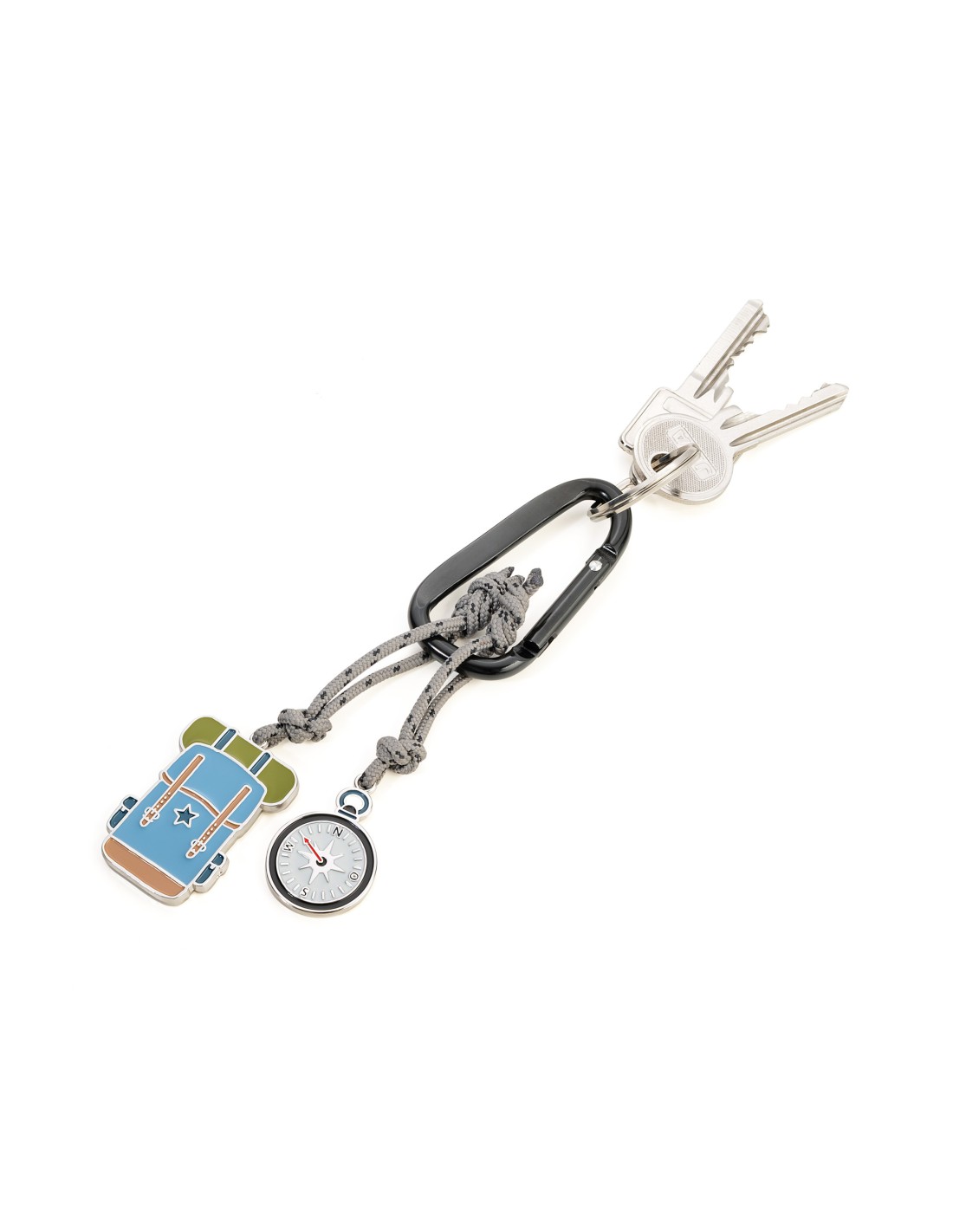 Porte-clés incl. Mousqueton, 2 pendentifs sur un corde d'escalade décorative: Sac à dos de randonnée et boussole, aluminium, émail, fonte métallique, nylon, multicolore