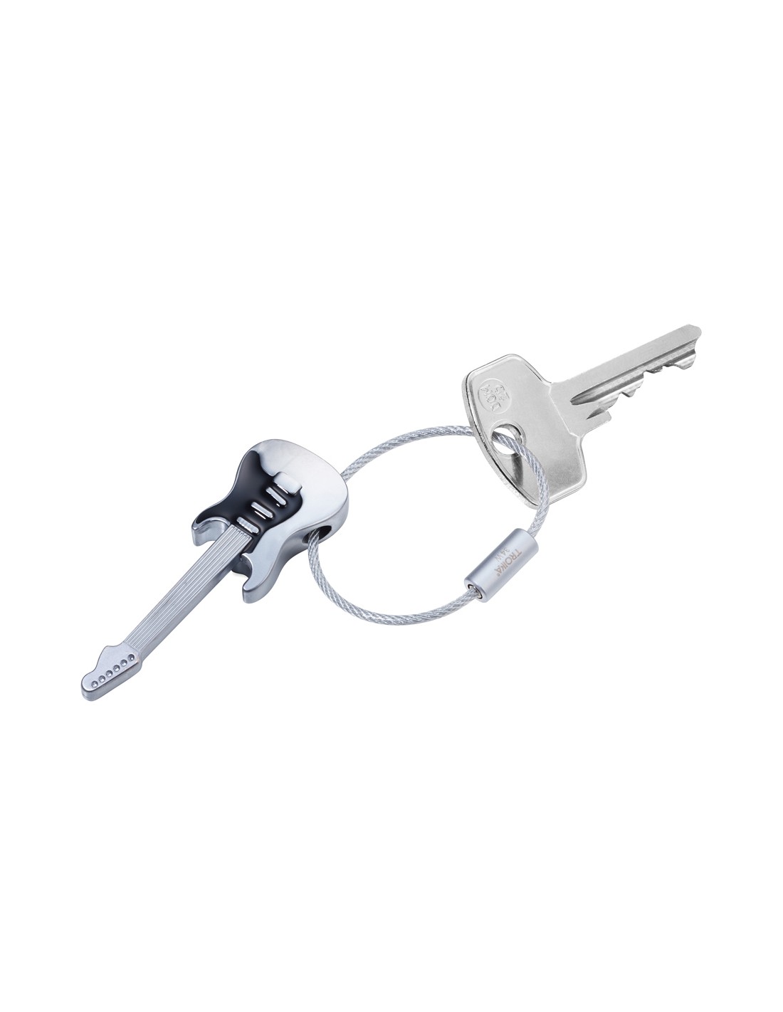 TROIKA STRAT AM RING Porte-clés guitare, gris mat/noir