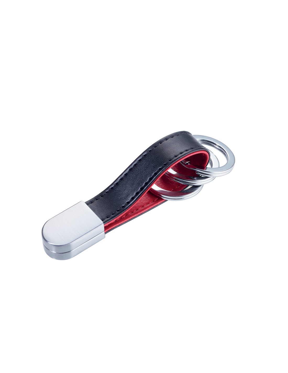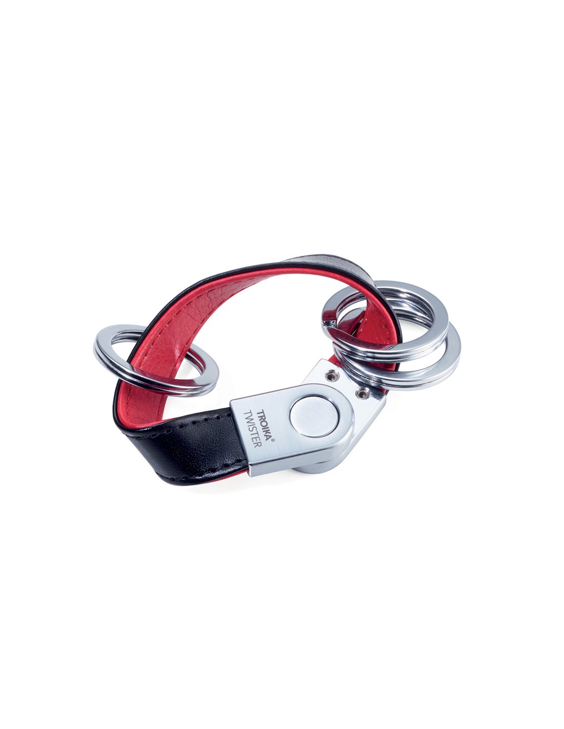 Porte-clés avec fermeture "twist" arrondie, boucle en cuir, 3 anneaux pour clés, cuir, métal, similicuir, noire/rouge