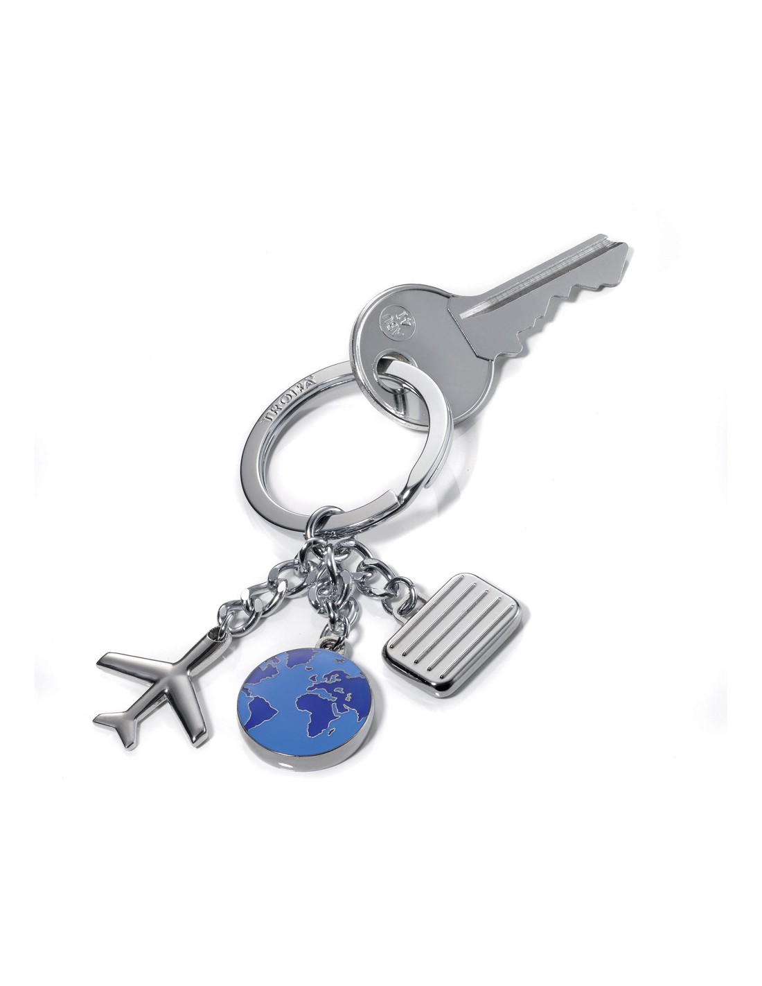 Porte-clés, avion, valise, globe terrestrechrome, brillant, argenté/bleu