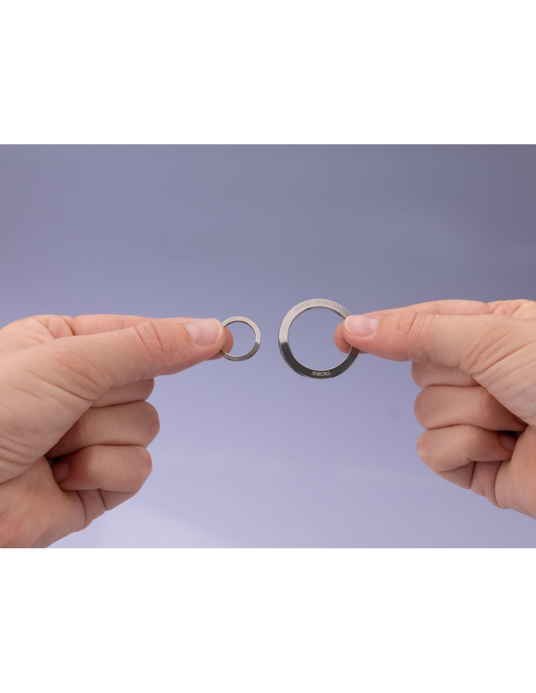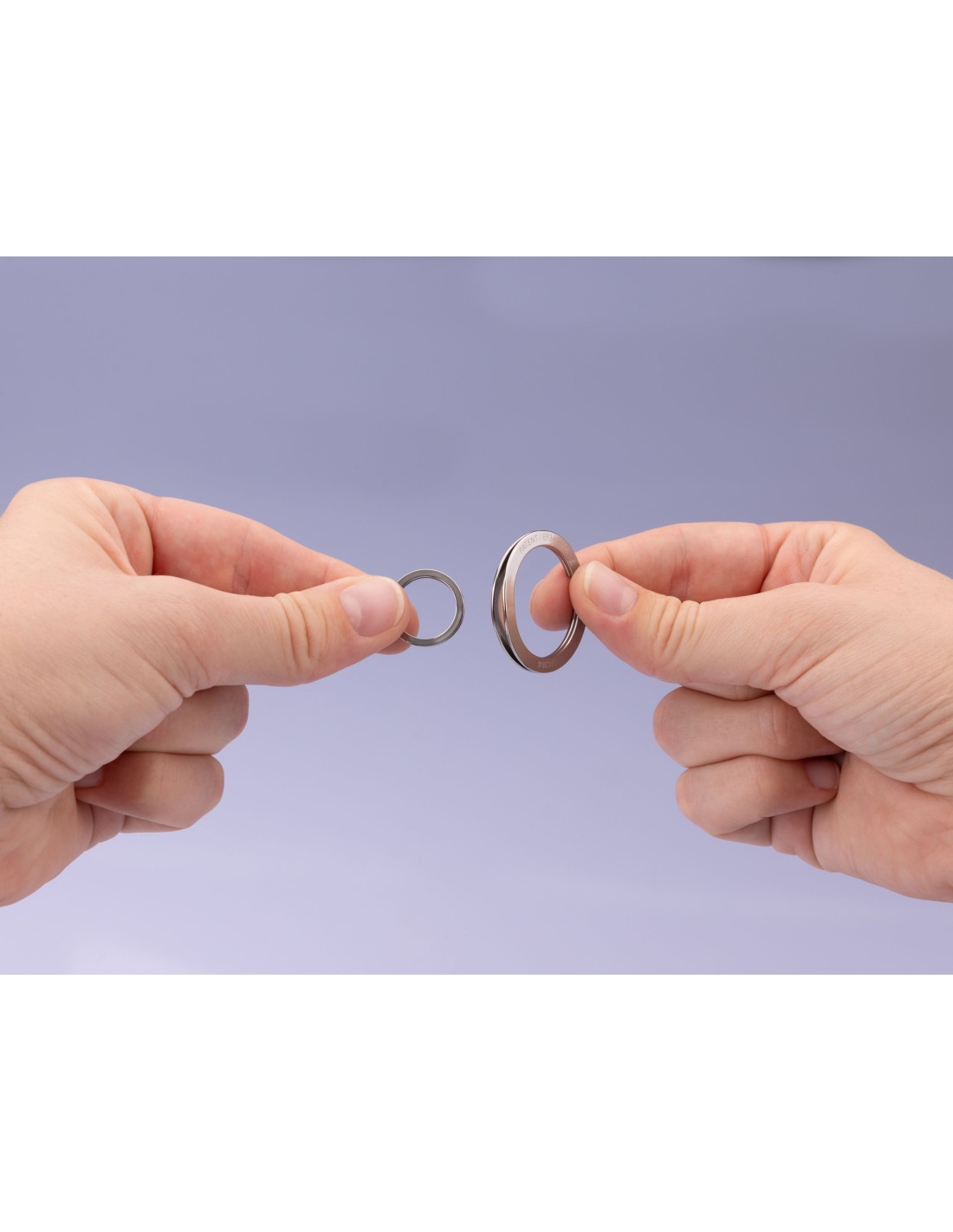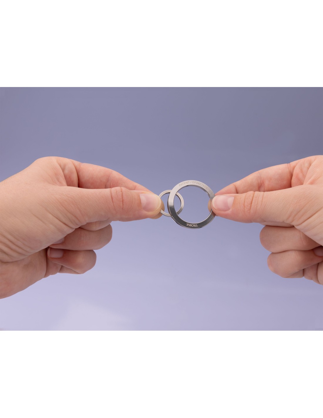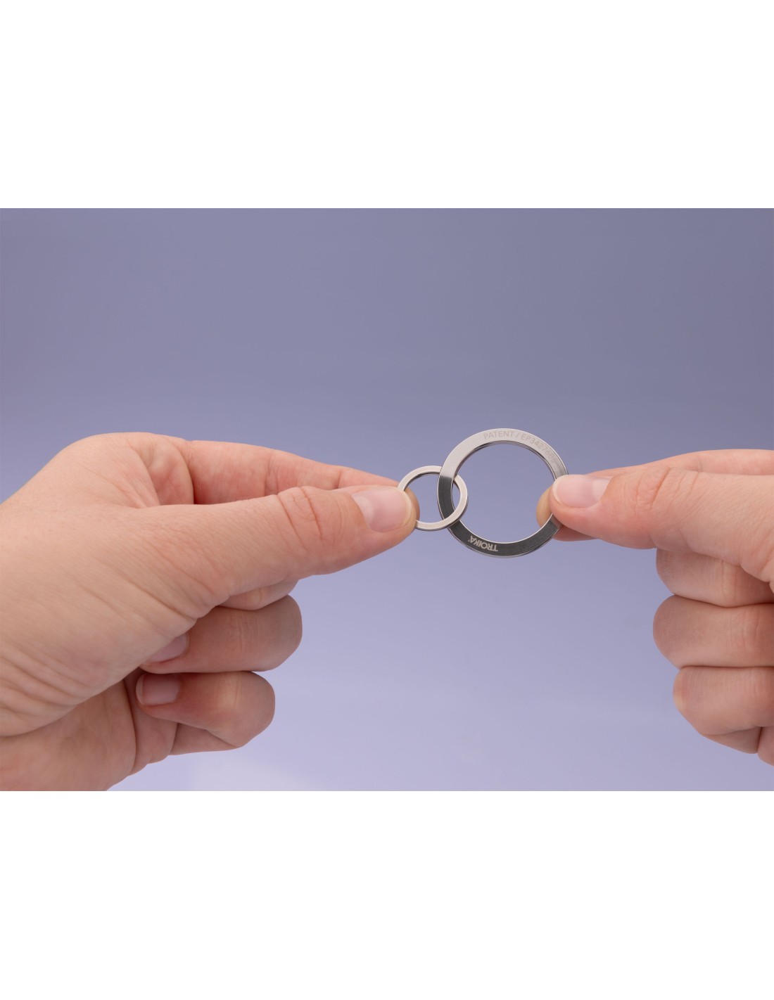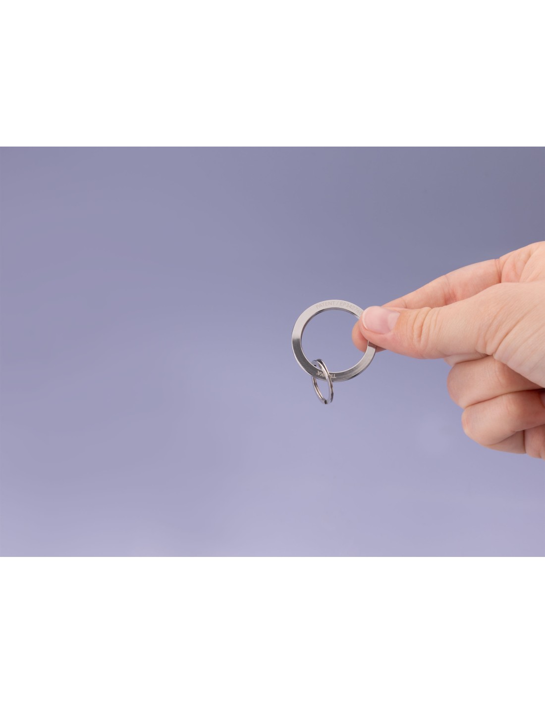 Porte-clés, fixation rapide & simple des clés grâce à un mécanisme d'ouverture breveté, y compris 3 anneaux plus petits également avec mécanisme breveté, protège l'ongle, acier inoxydable, poli, mat, argenté
