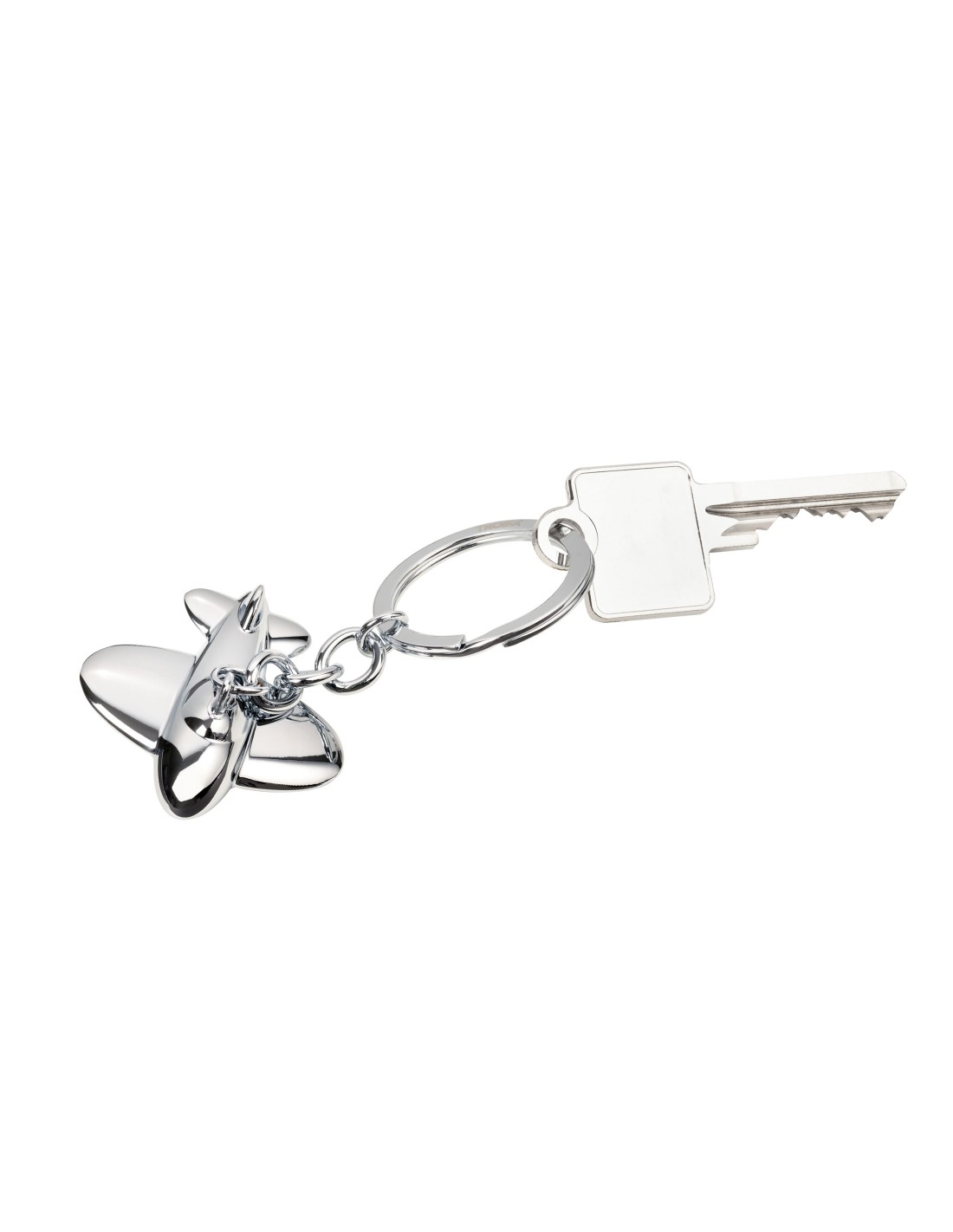 Porte-clés, avion au décollage avec des contours arrondis, fonte métallique, chrome, brillant, argenté